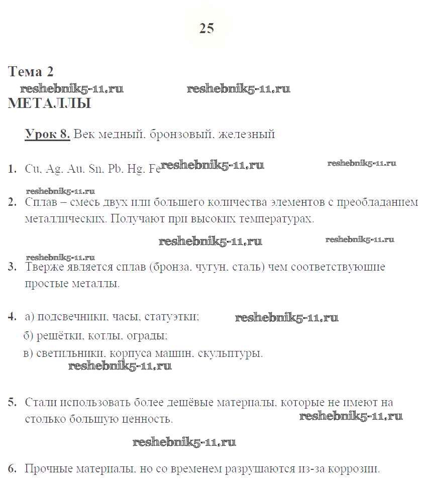 Готовая домашняя работа с ответами по Химии за 9 класс Микитюк Рабочая тетрадь УМК Дрофа 2014 ФГОС - Урок 8. Век медный, бронзовый, железный стр.25