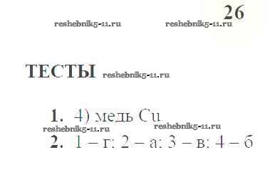 Готовая домашняя работа с ответами по Химии за 9 класс Микитюк Рабочая тетрадь УМК Дрофа 2014 ФГОС - Урок 8. Век медный, бронзовый, железный стр.26