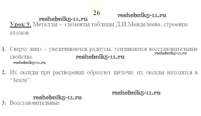 Готовая домашняя работа с ответами по Химии за 9 класс Микитюк Рабочая тетрадь УМК Дрофа 2014 ФГОС - Урок 9. Металлы — элементы таблицы Д.И. Менделеева, строение атомов стр.26