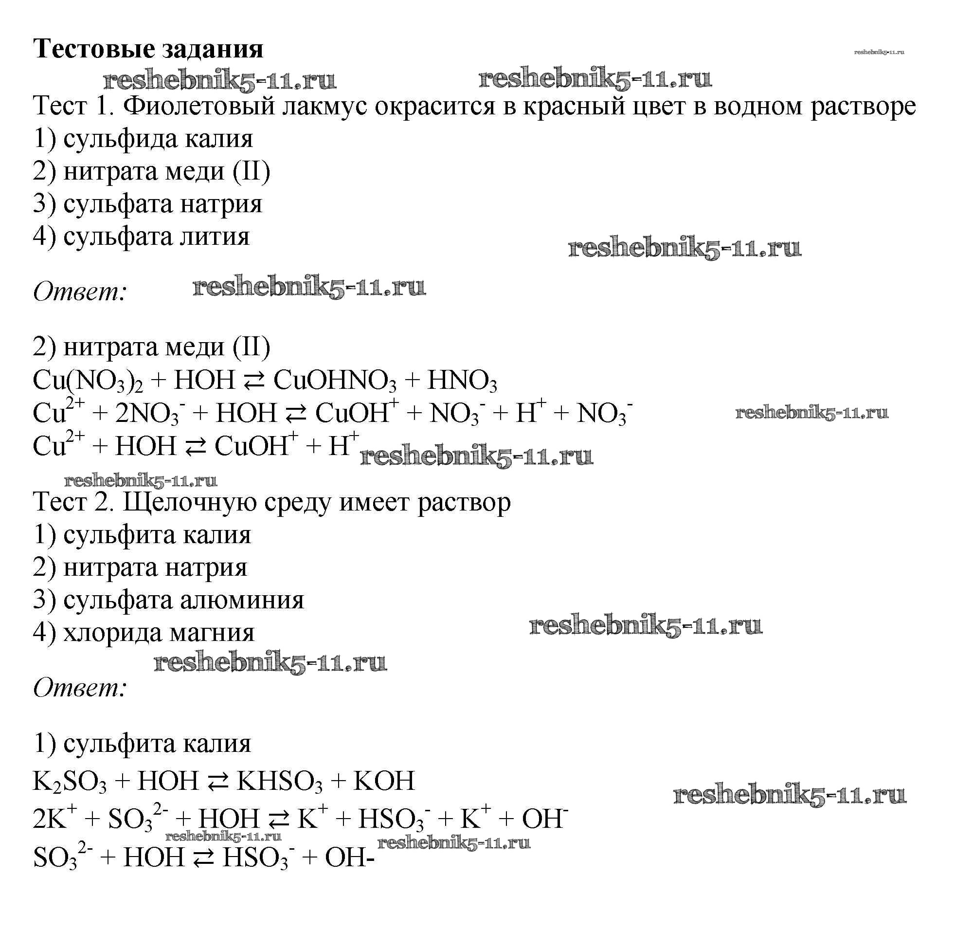 Решебник №3 / новое издание / § 10. Гидролиз солей / тестовое задание