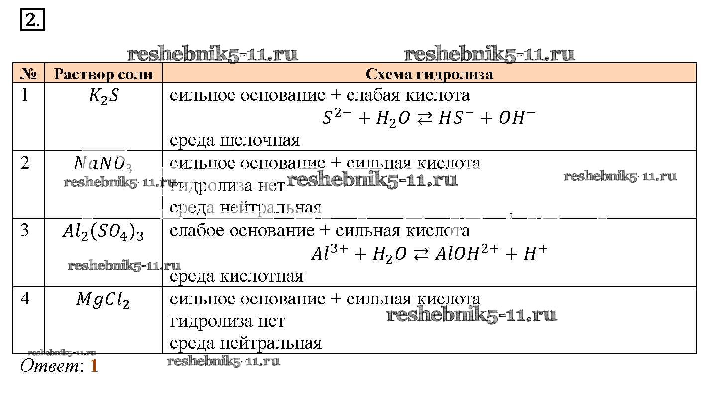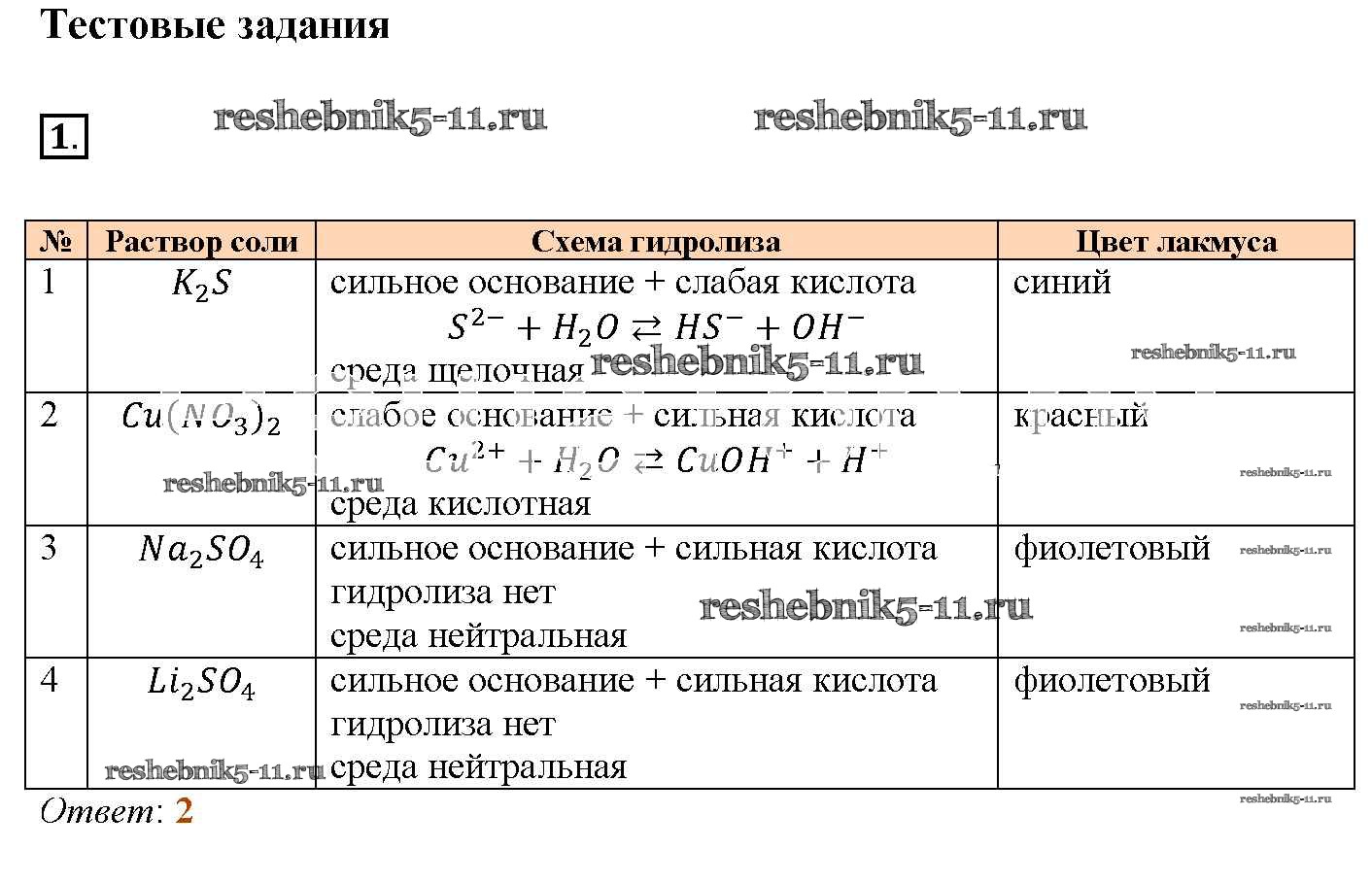 Решебник №2 / новое издание / § 10. Гидролиз солей / тестовое задание