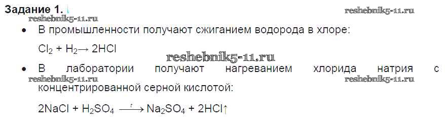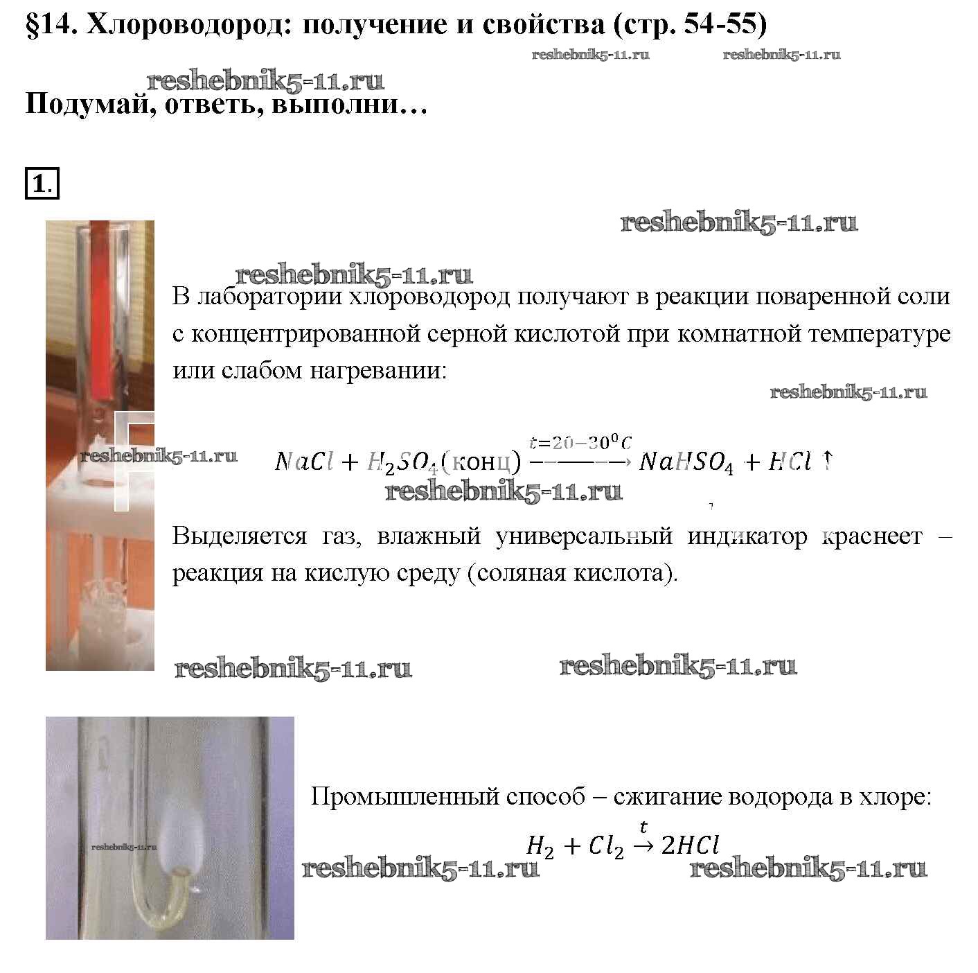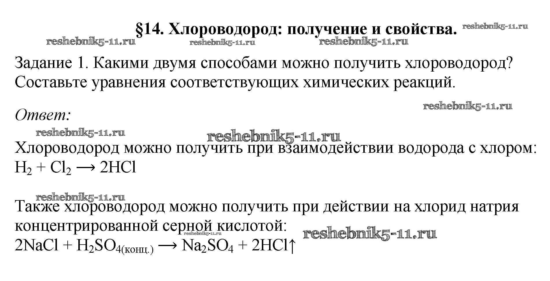 Готовая домашняя работа с ответами по Химии за 9 класс Рудзитис, Фельдман Учебник УМК Просвещение 2016 ФГОС - § 14. Хлороводород - получение и свойства 1