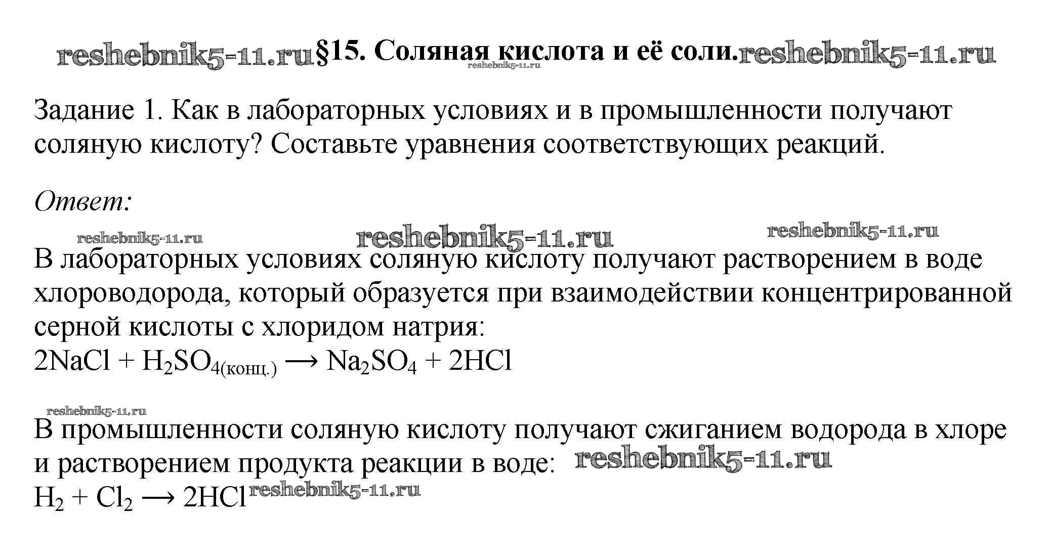 Решебник №3 / новое издание / § 15. Соляная кислота и её соли / 1
