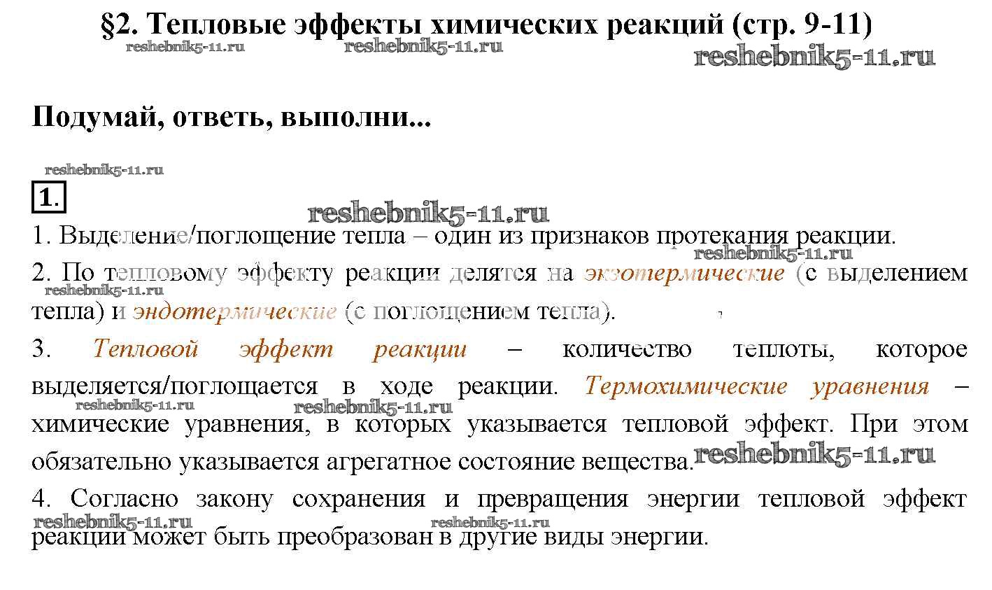 Готовая домашняя работа с ответами по Химии за 9 класс Рудзитис, Фельдман Учебник УМК Просвещение 2016 ФГОС - § 2. Тепловые эффекты химических реакций 1