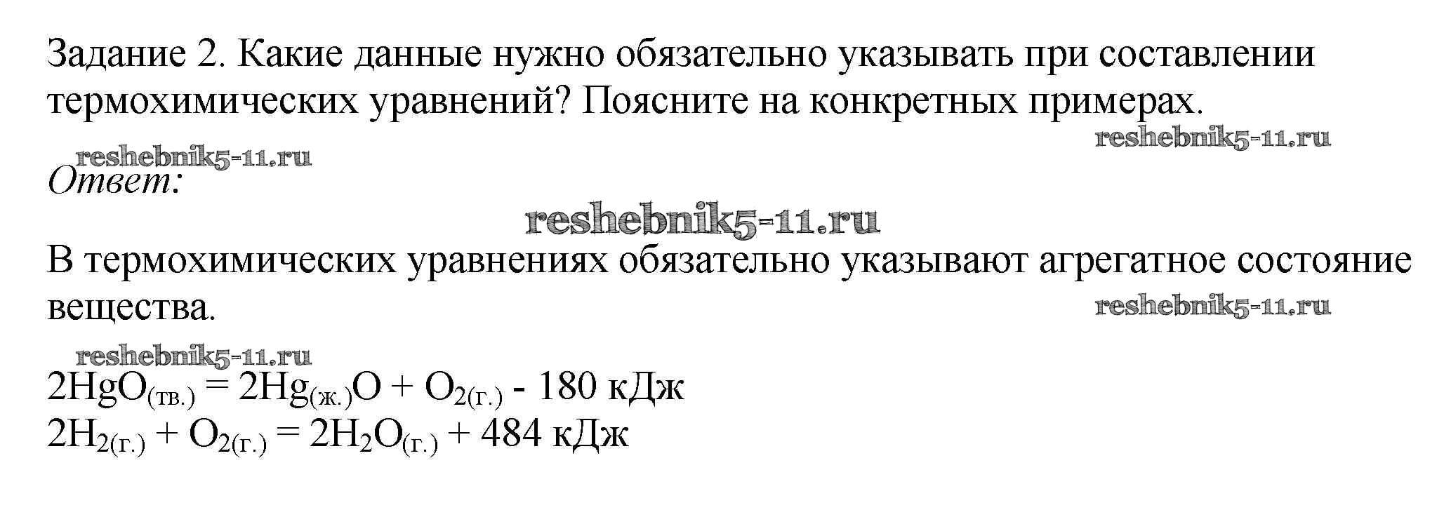 Готовая домашняя работа с ответами по Химии за 9 класс Рудзитис, Фельдман Учебник УМК Просвещение 2016 ФГОС - § 2. Тепловые эффекты химических реакций 2