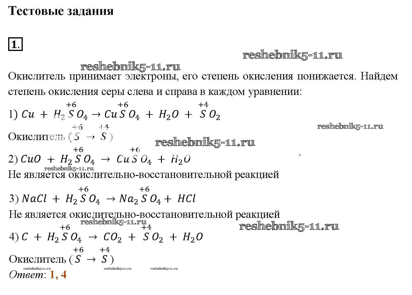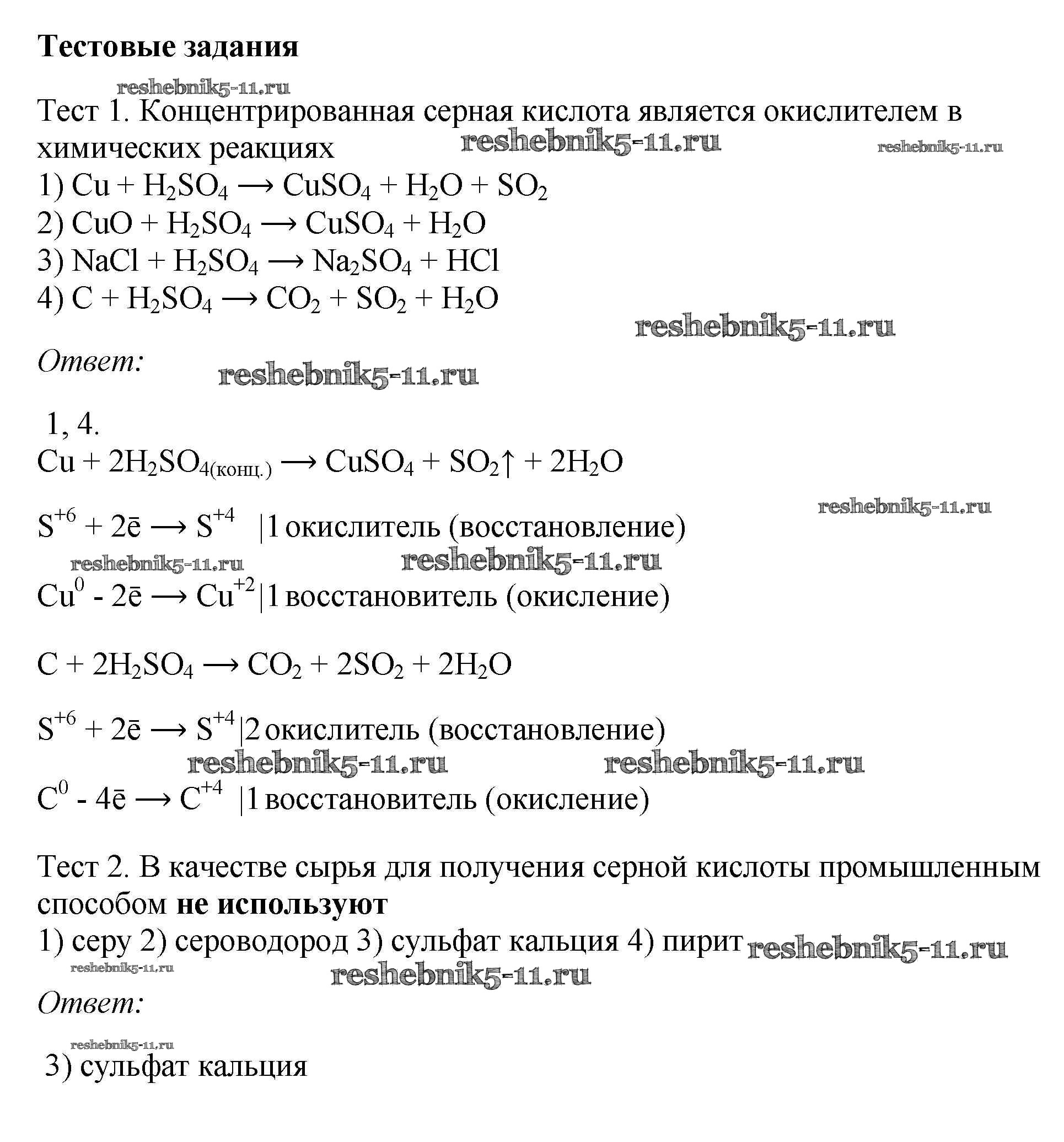 Решебник №2 / новое издание / § 21. Оксид серы (VI). Серная кислота / тестовое задание