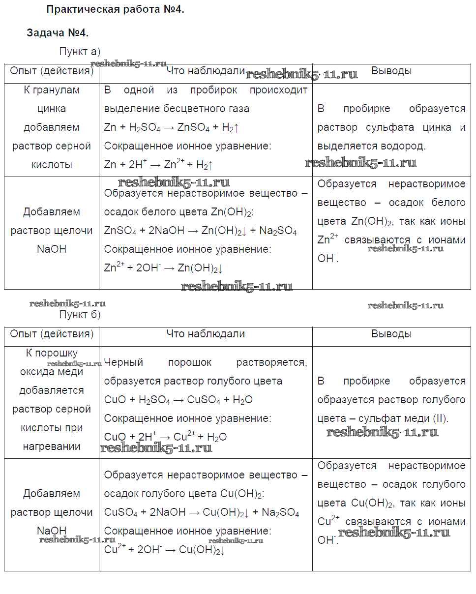 Готовая домашняя работа с ответами по Химии за 9 класс Рудзитис, Фельдман Учебник УМК Просвещение 2016 ФГОС - § 22. Практическая работа №4 задание №4