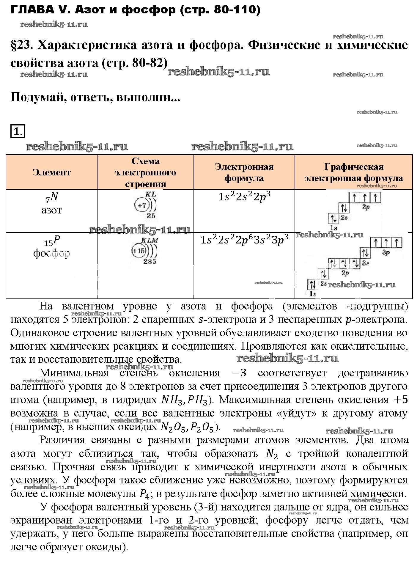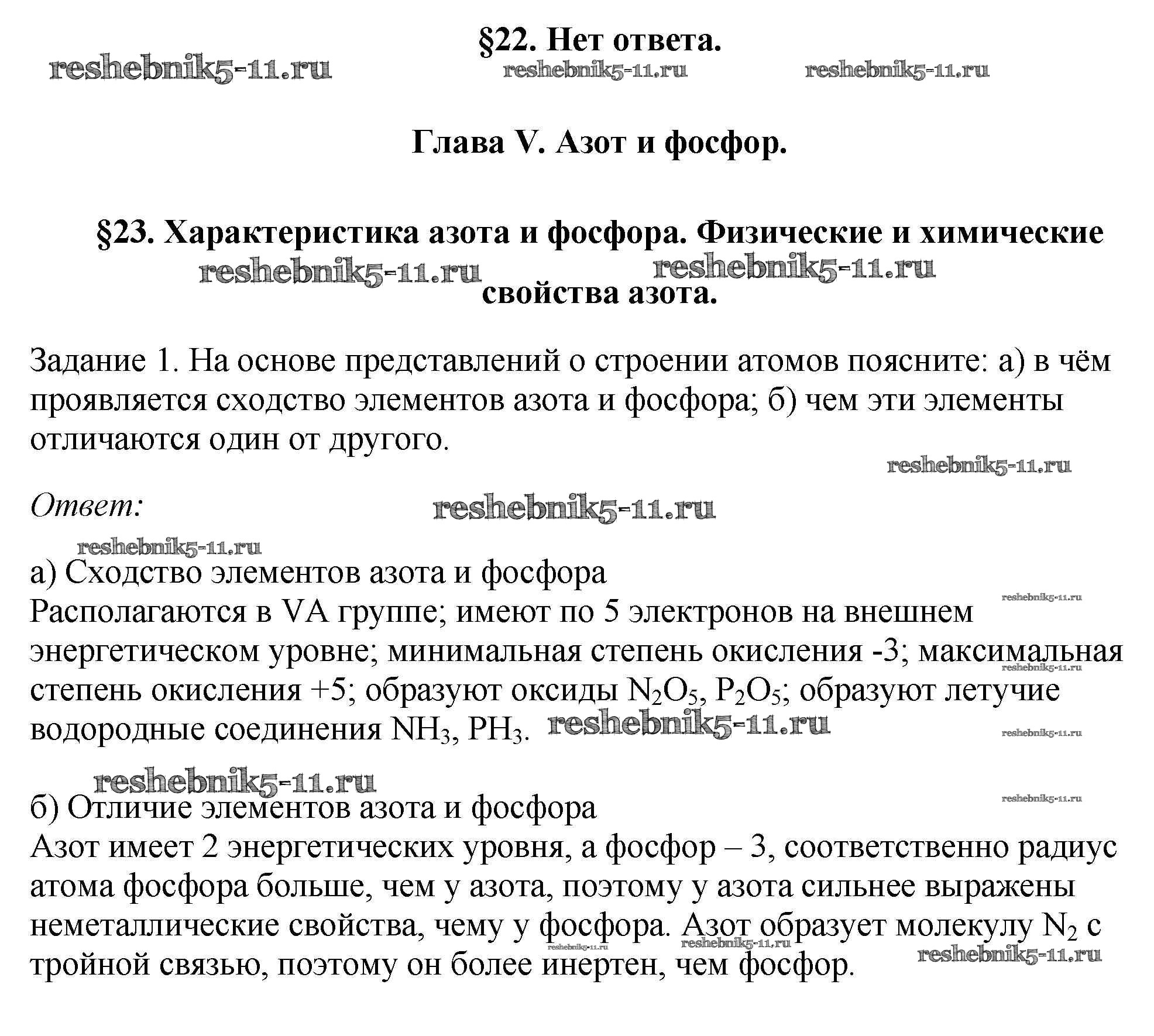 Готовая домашняя работа с ответами по Химии за 9 класс Рудзитис, Фельдман Учебник УМК Просвещение 2016 ФГОС - § 23. Характеристика азота и фосфора. Физические и химические свойства азота 1