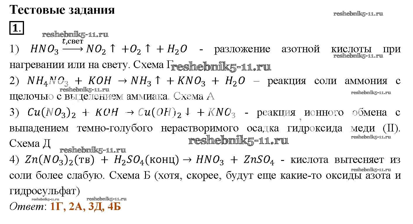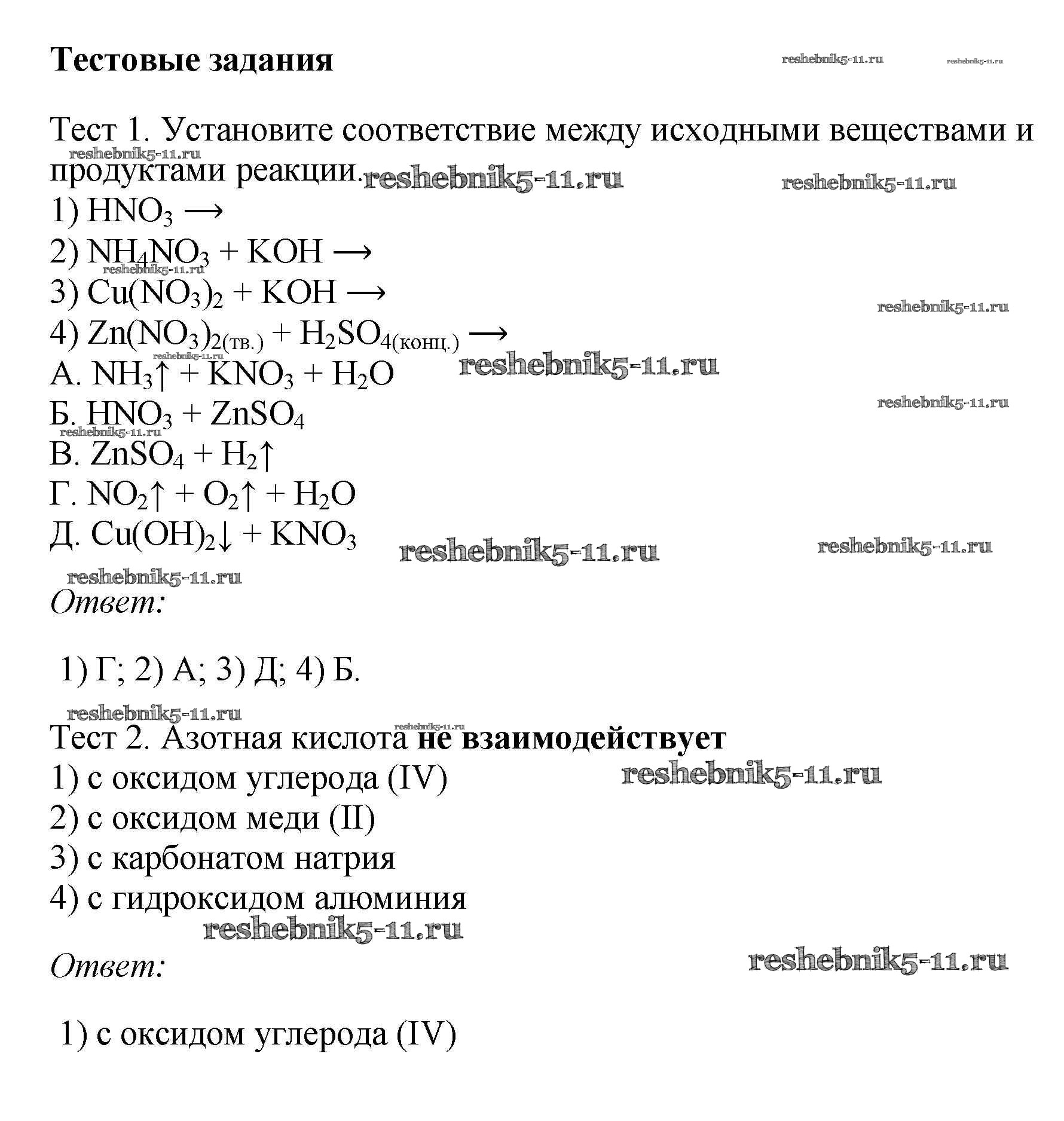 Решебник №1 / новое издание / § 27. Азотная кислота / тестовое задание