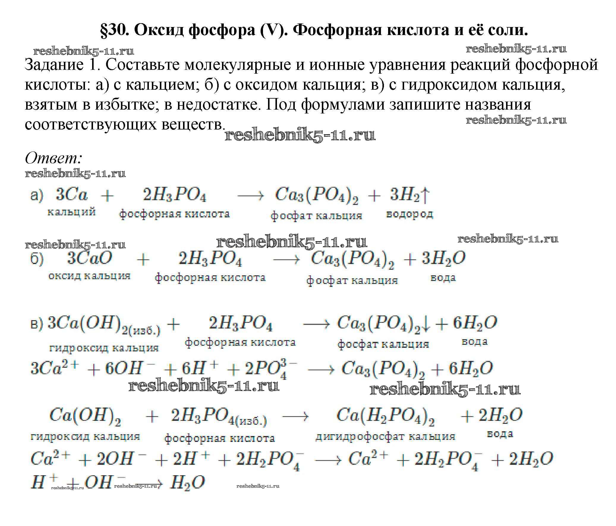Решебник №1 / новое издание / § 30. Оксид фосфора (IV). Фосфорная кислота и ее соли / 1