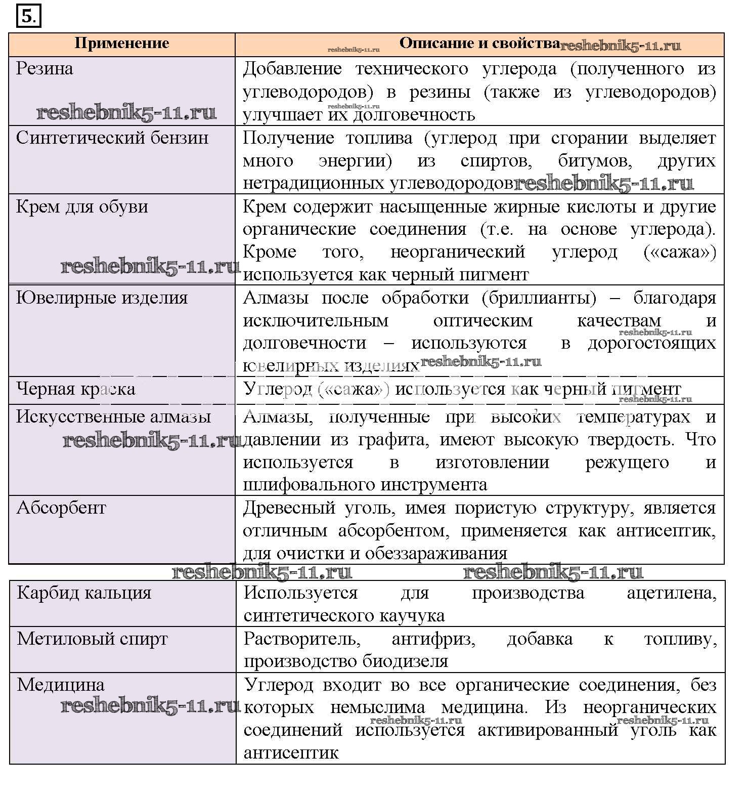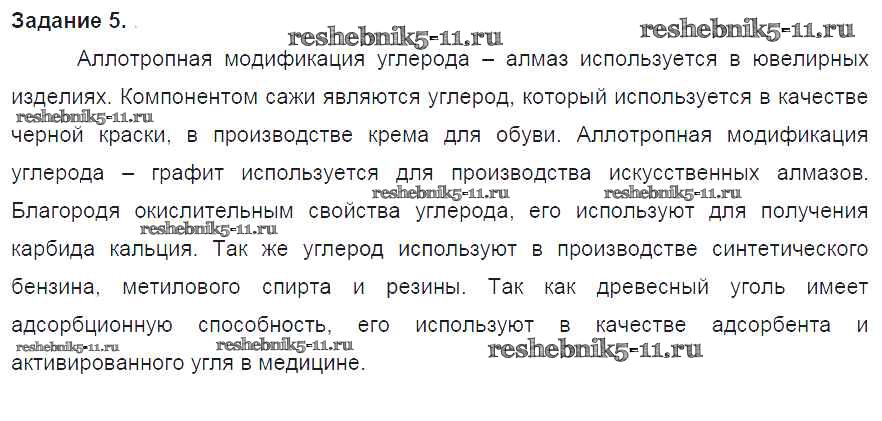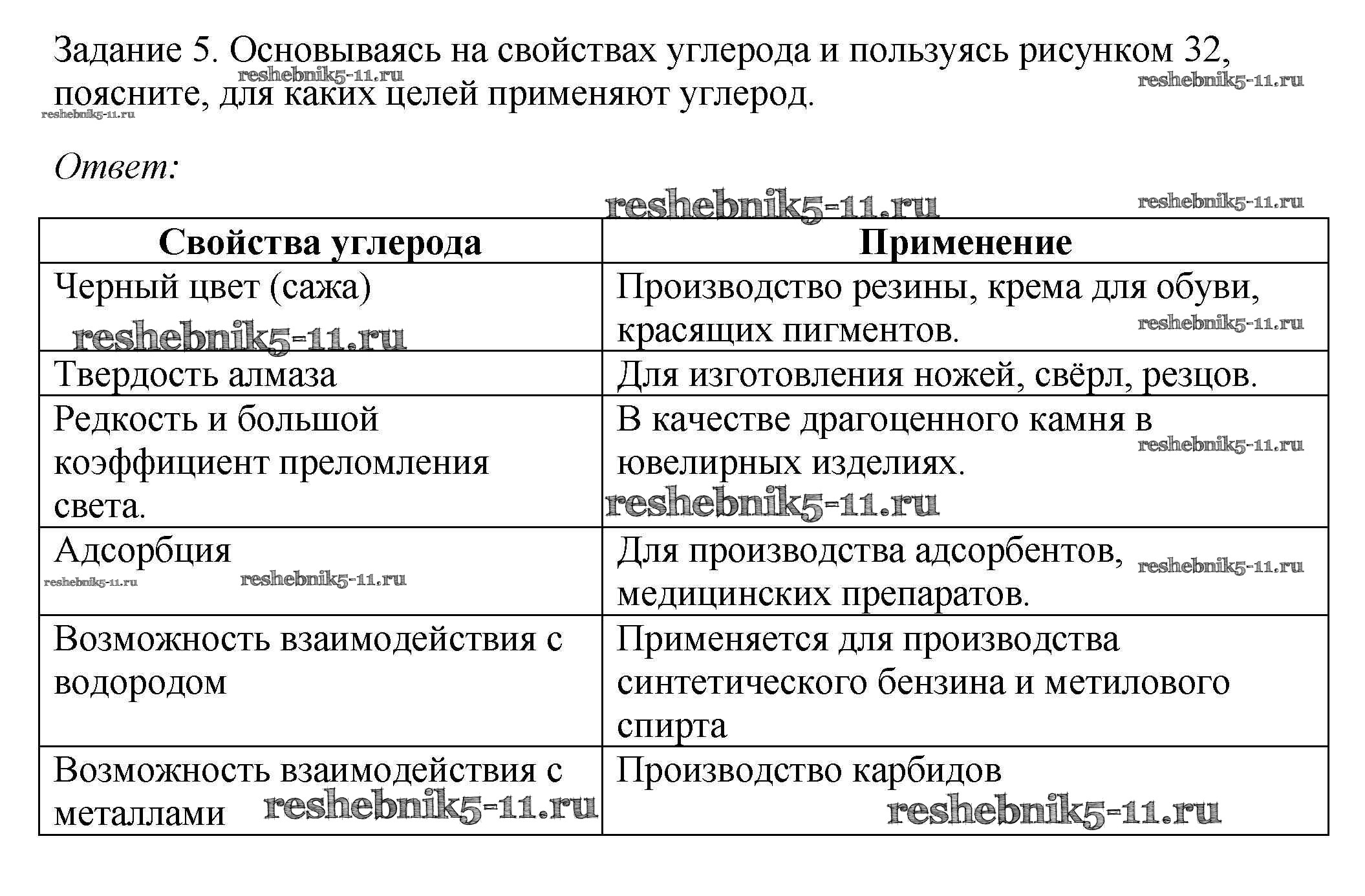 Готовая домашняя работа с ответами по Химии за 9 класс Рудзитис, Фельдман Учебник УМК Просвещение 2016 ФГОС - § 32. Химические свойства углерода. Адсорбция 5