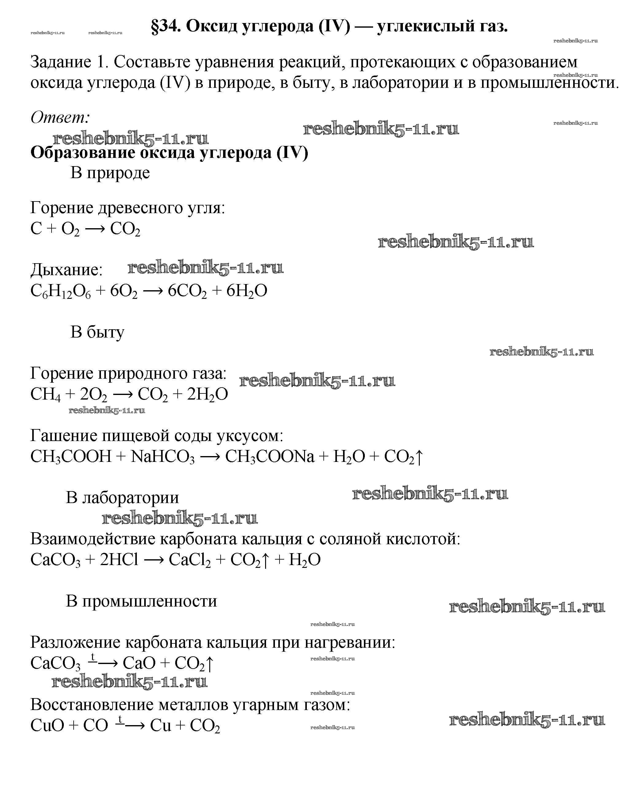 Решебник №2 / новое издание / § 34. Оксид углерода (IV) – углекислый газ / 1