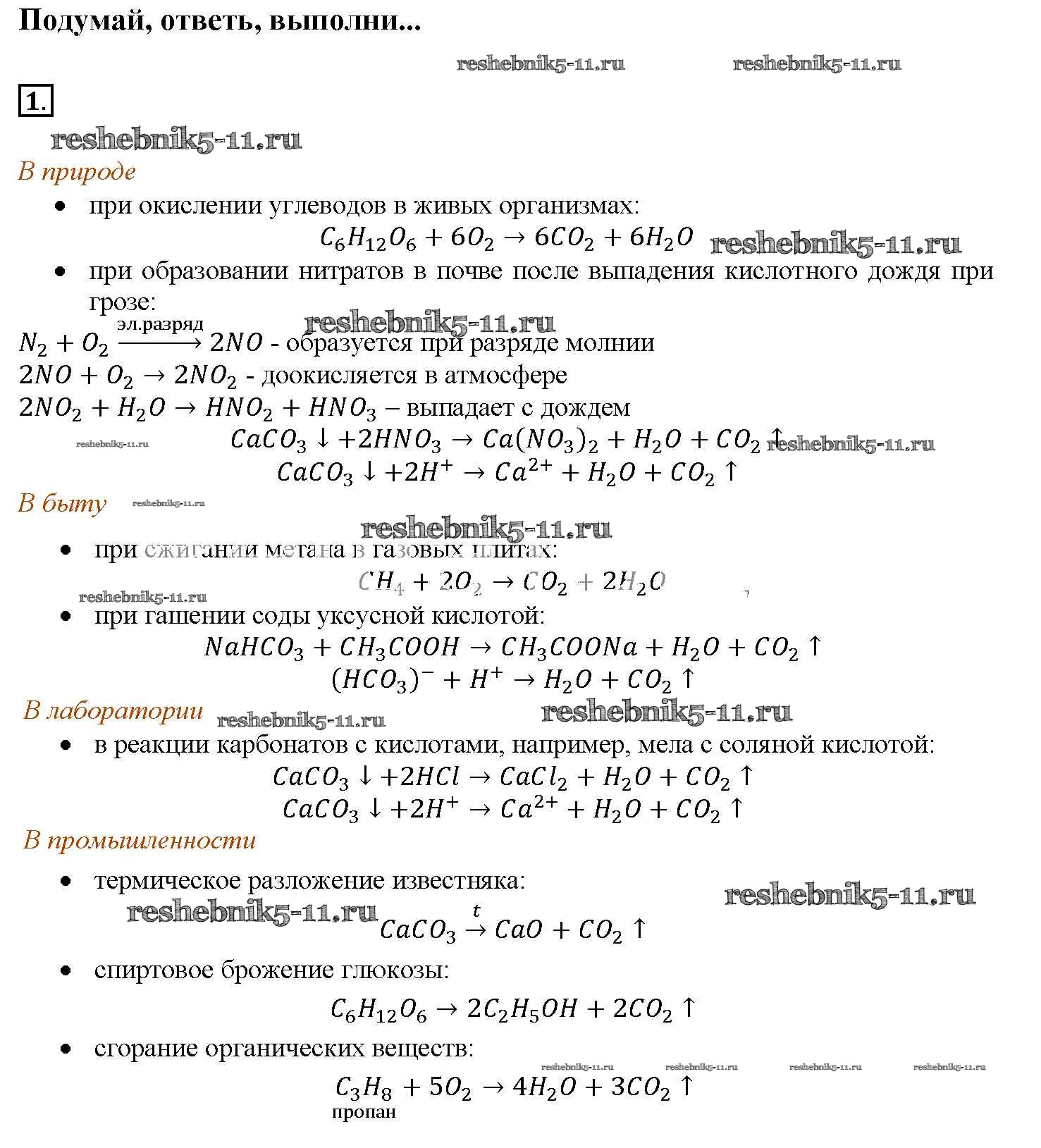 Готовая домашняя работа с ответами по Химии за 9 класс Рудзитис, Фельдман Учебник УМК Просвещение 2016 ФГОС - § 34. Оксид углерода (IV) – углекислый газ 1