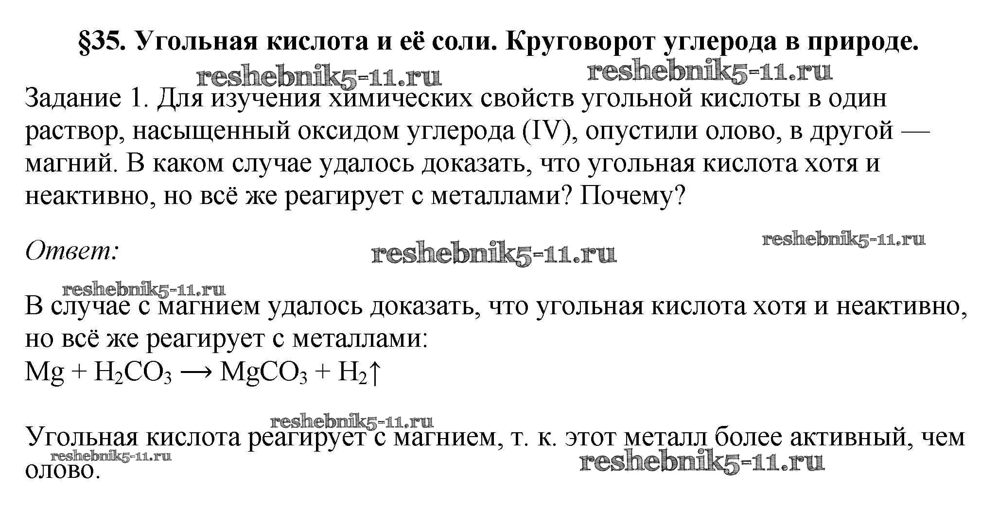 Готовая домашняя работа с ответами по Химии за 9 класс Рудзитис, Фельдман Учебник УМК Просвещение 2016 ФГОС - § 35. Угольная кислота и ее соли 1