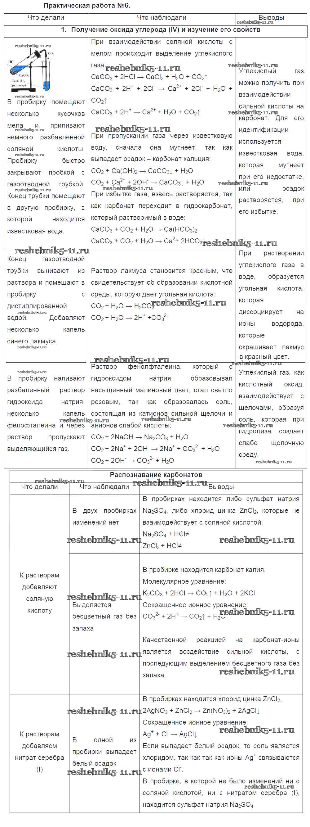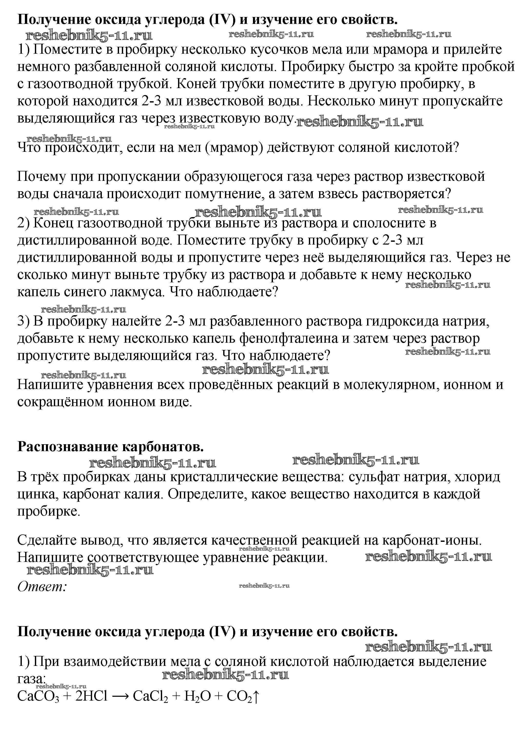 Готовая домашняя работа с ответами по Химии за 9 класс Рудзитис, Фельдман Учебник УМК Просвещение 2016 ФГОС - § 36. Практическая работа №6 ПР-6