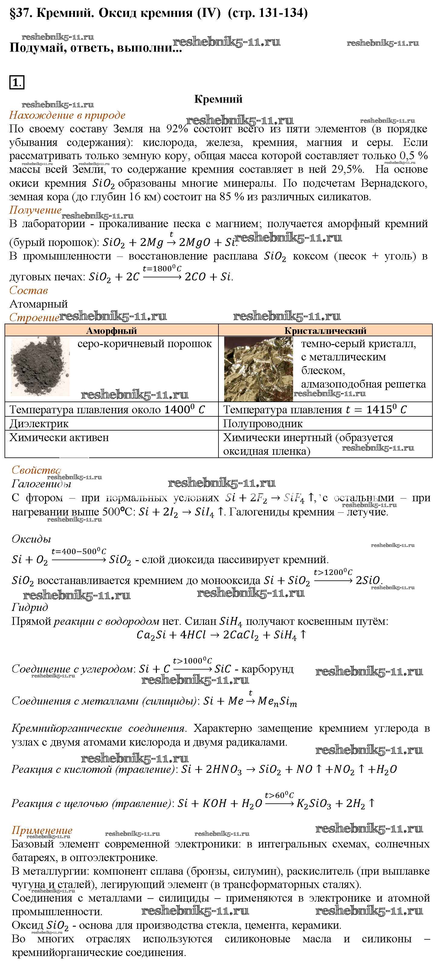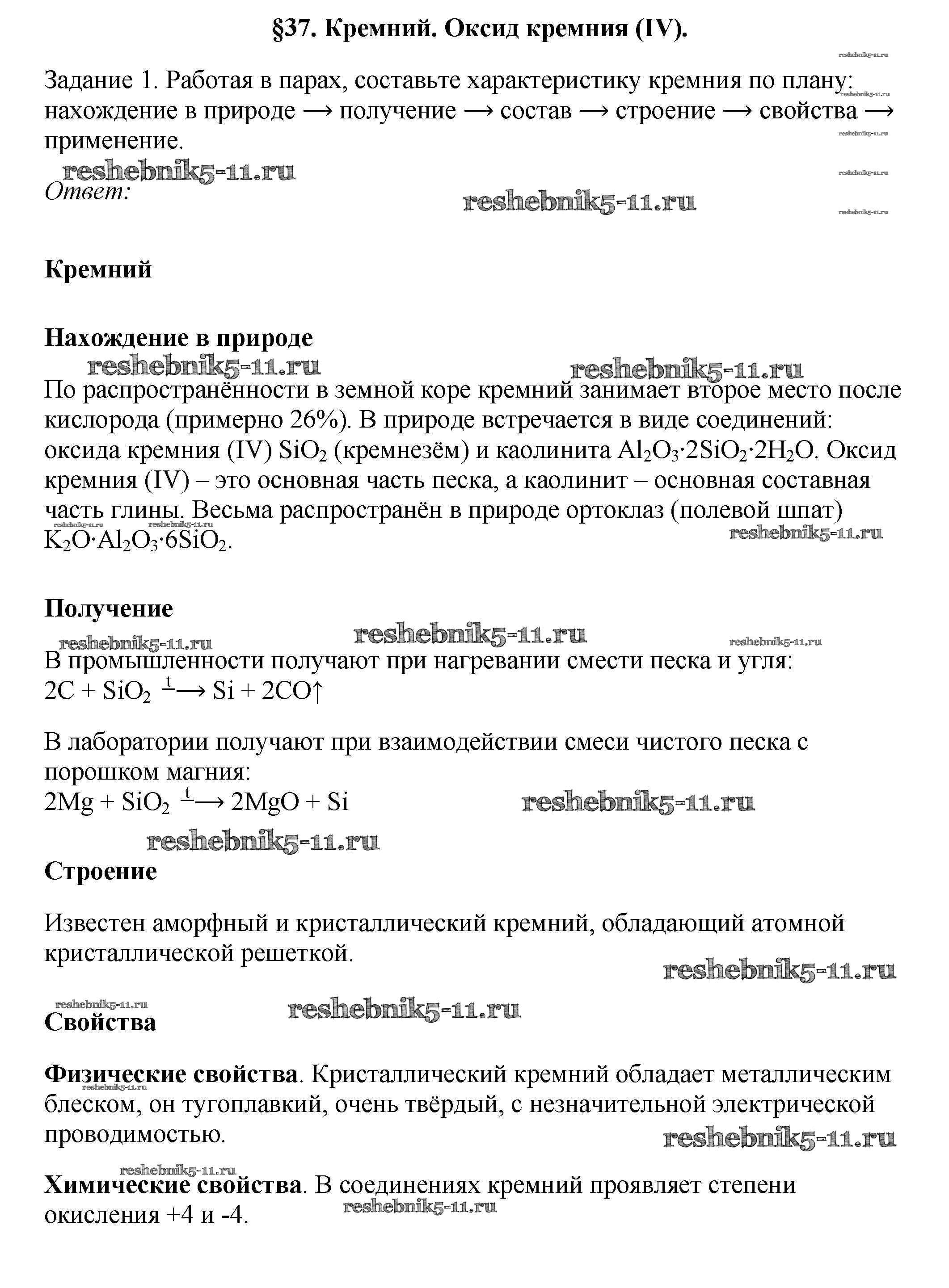 Готовая домашняя работа с ответами по Химии за 9 класс Рудзитис, Фельдман Учебник УМК Просвещение 2016 ФГОС - § 37. Кремний. Оксид кремния (IV) 1