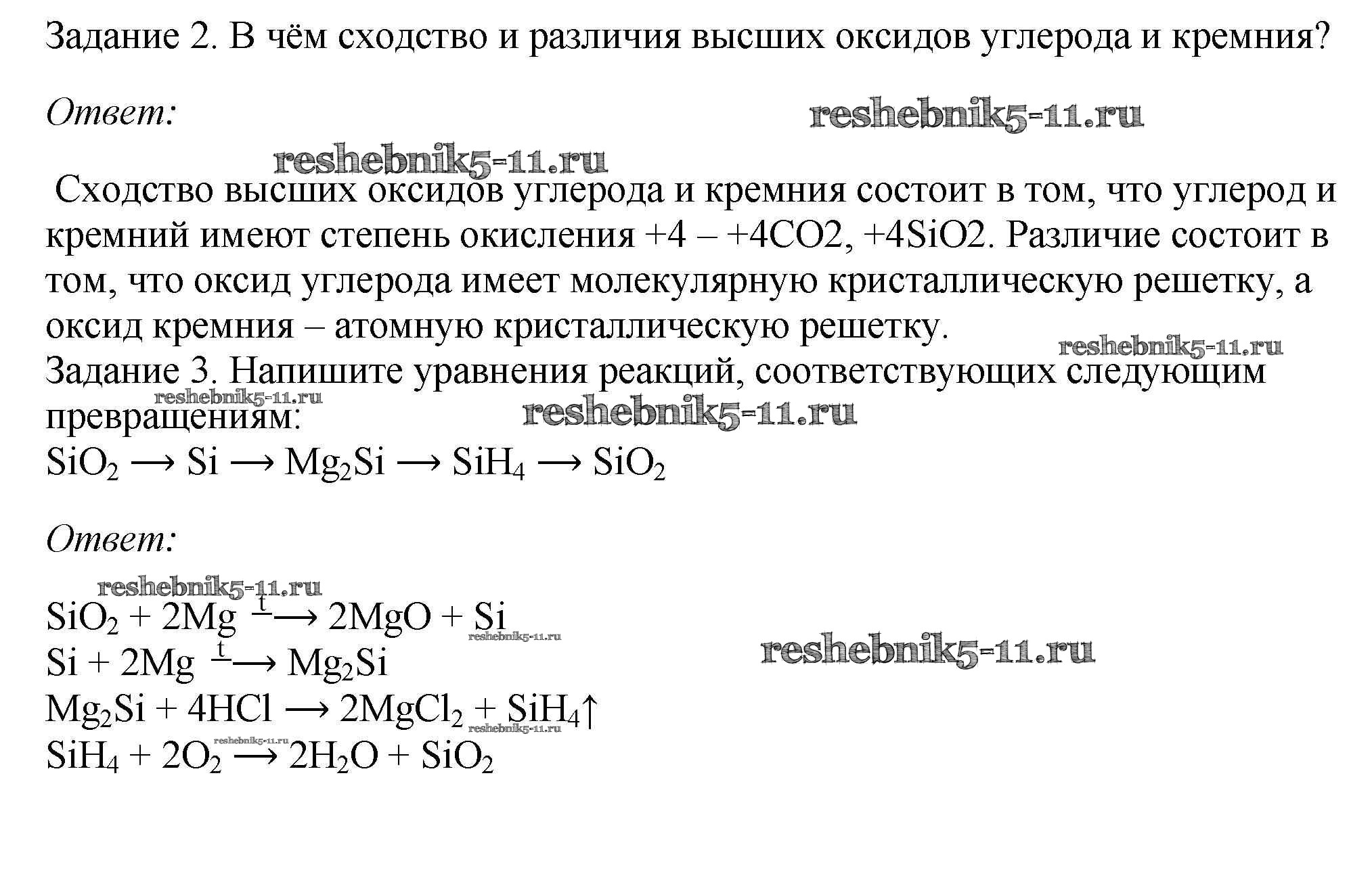 Готовая домашняя работа с ответами по Химии за 9 класс Рудзитис, Фельдман Учебник УМК Просвещение 2016 ФГОС - § 37. Кремний. Оксид кремния (IV) 2