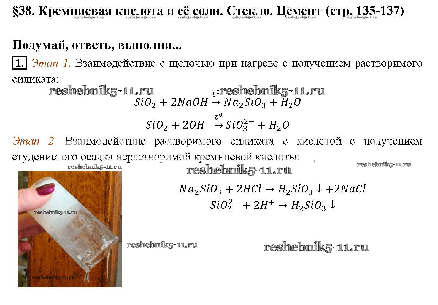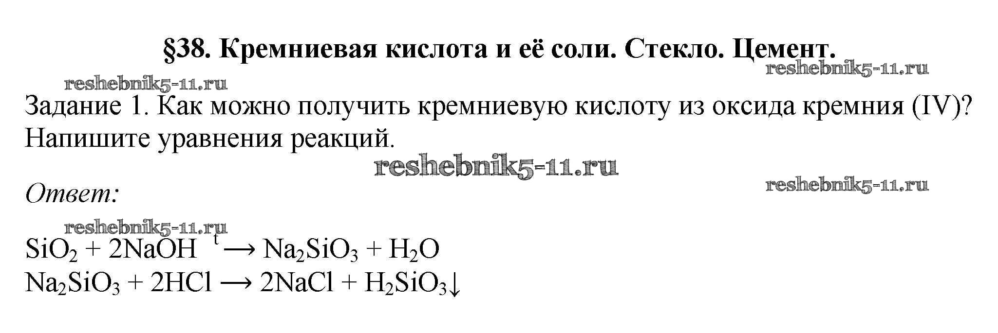 Решебник №1 / новое издание / § 38. Кремниевая кислота и ее соли. Стекло. Цемент / 1