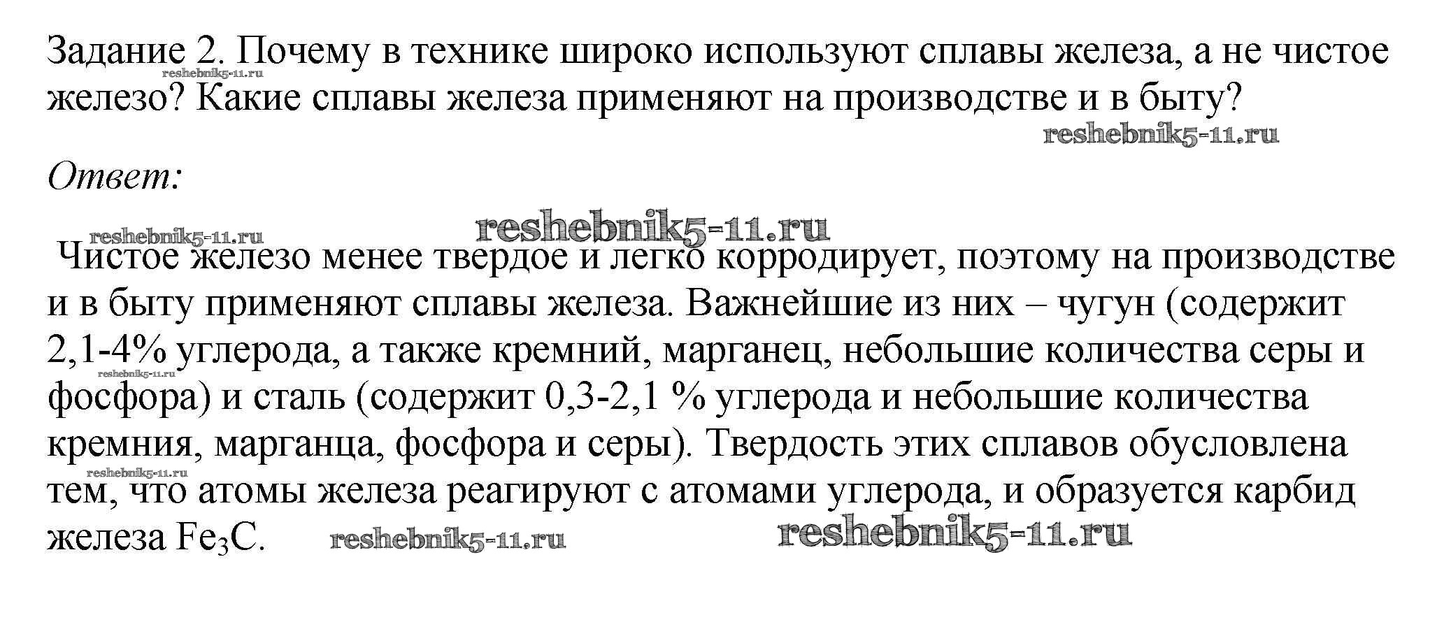 Готовая домашняя работа с ответами по Химии за 9 класс Рудзитис, Фельдман Учебник УМК Просвещение 2016 ФГОС - § 42. Сплавы 2