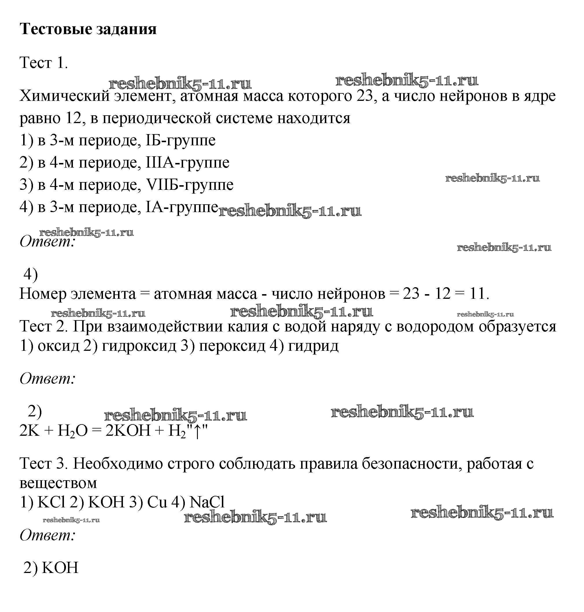 Решебник №1 / новое издание / § 43. Щелочные металлы / тестовое задание