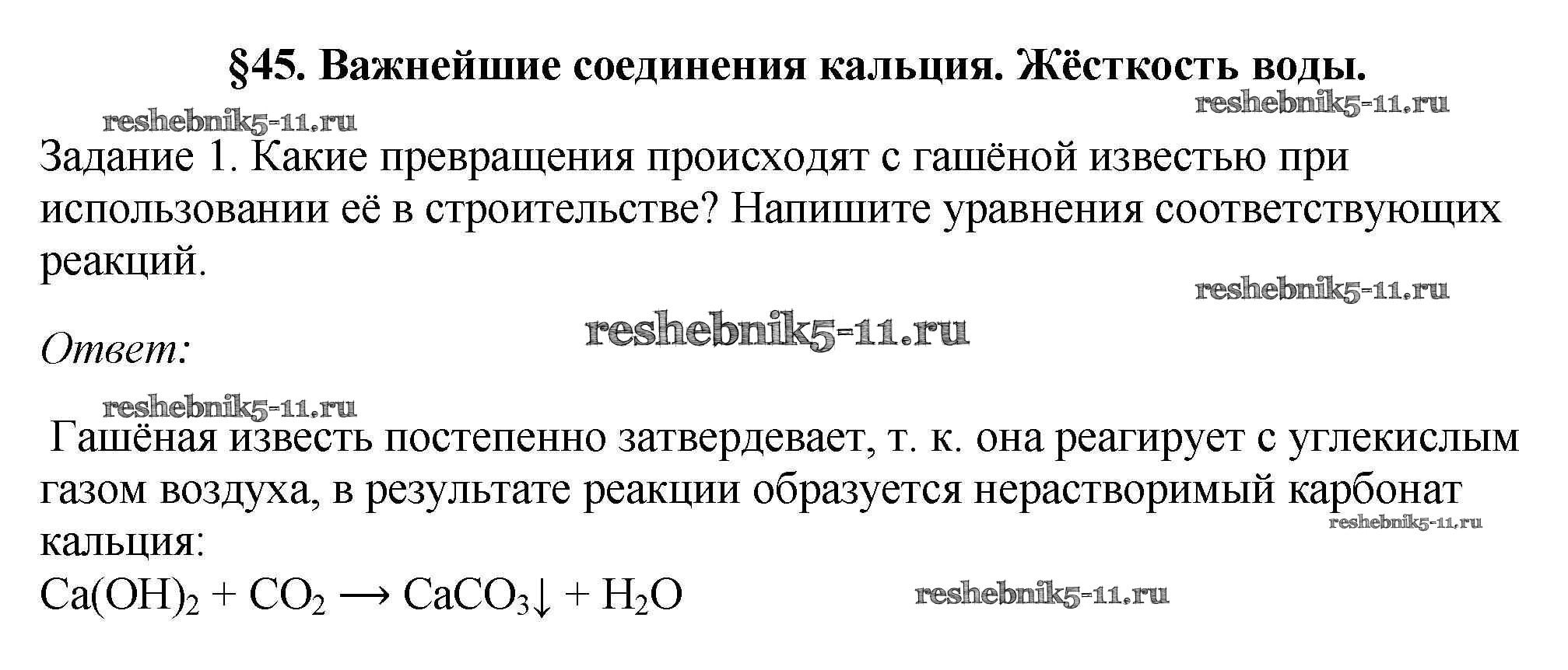 Решебник №1 / новое издание / § 45. Важнейшие соединения кальция. Жесткость воды / 1
