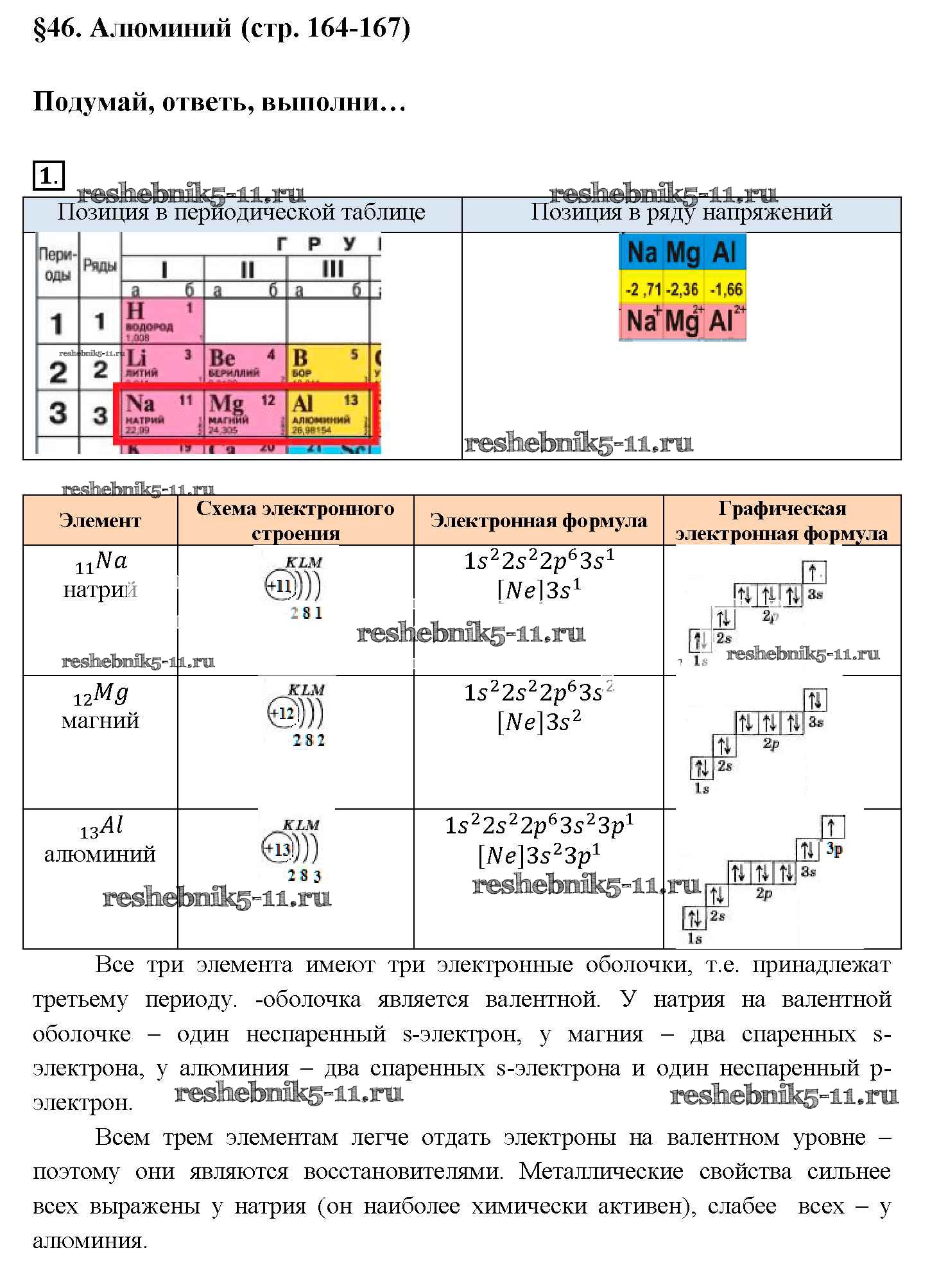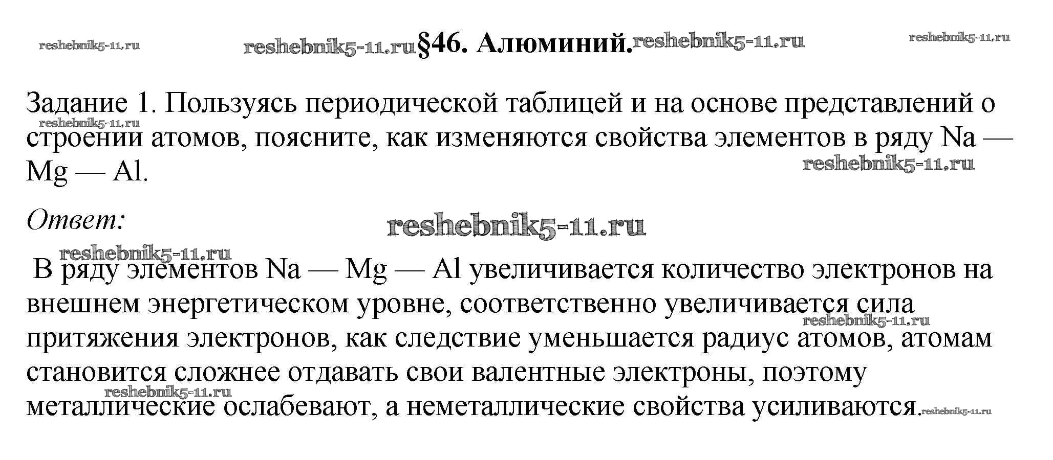 Готовая домашняя работа с ответами по Химии за 9 класс Рудзитис, Фельдман Учебник УМК Просвещение 2016 ФГОС - § 46. Алюминий 1
