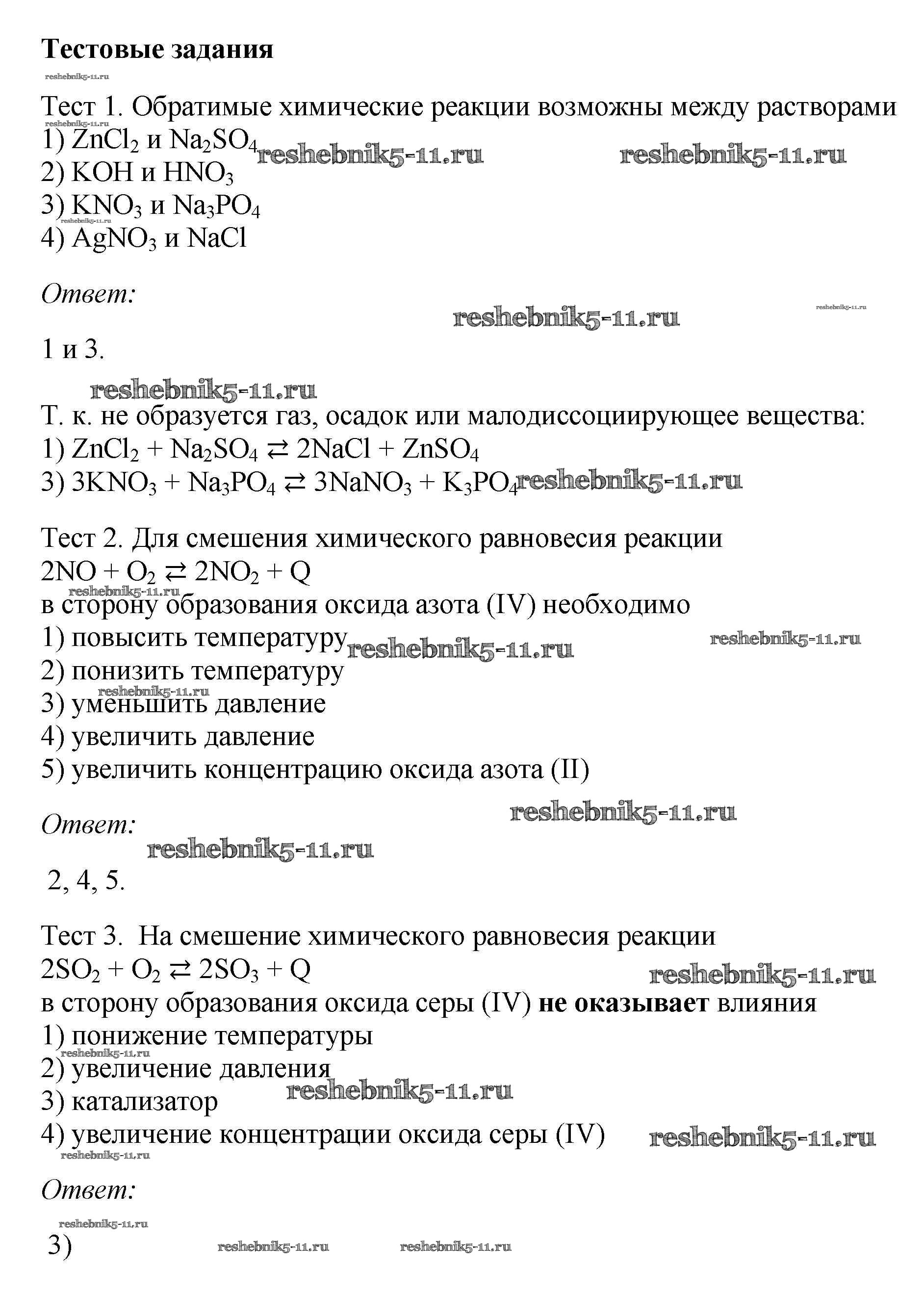 Решебник №3 / новое издание / § 5. Обратимые реакции. Понятие о химическом равновесии / тестовое задание