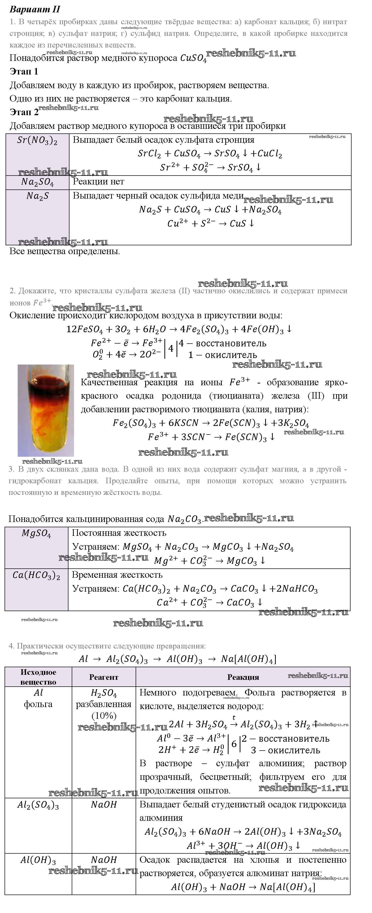 Готовая домашняя работа с ответами по Химии за 9 класс Рудзитис, Фельдман Учебник УМК Просвещение 2016 ФГОС - § 50. Практическая работа №7 вариант №2