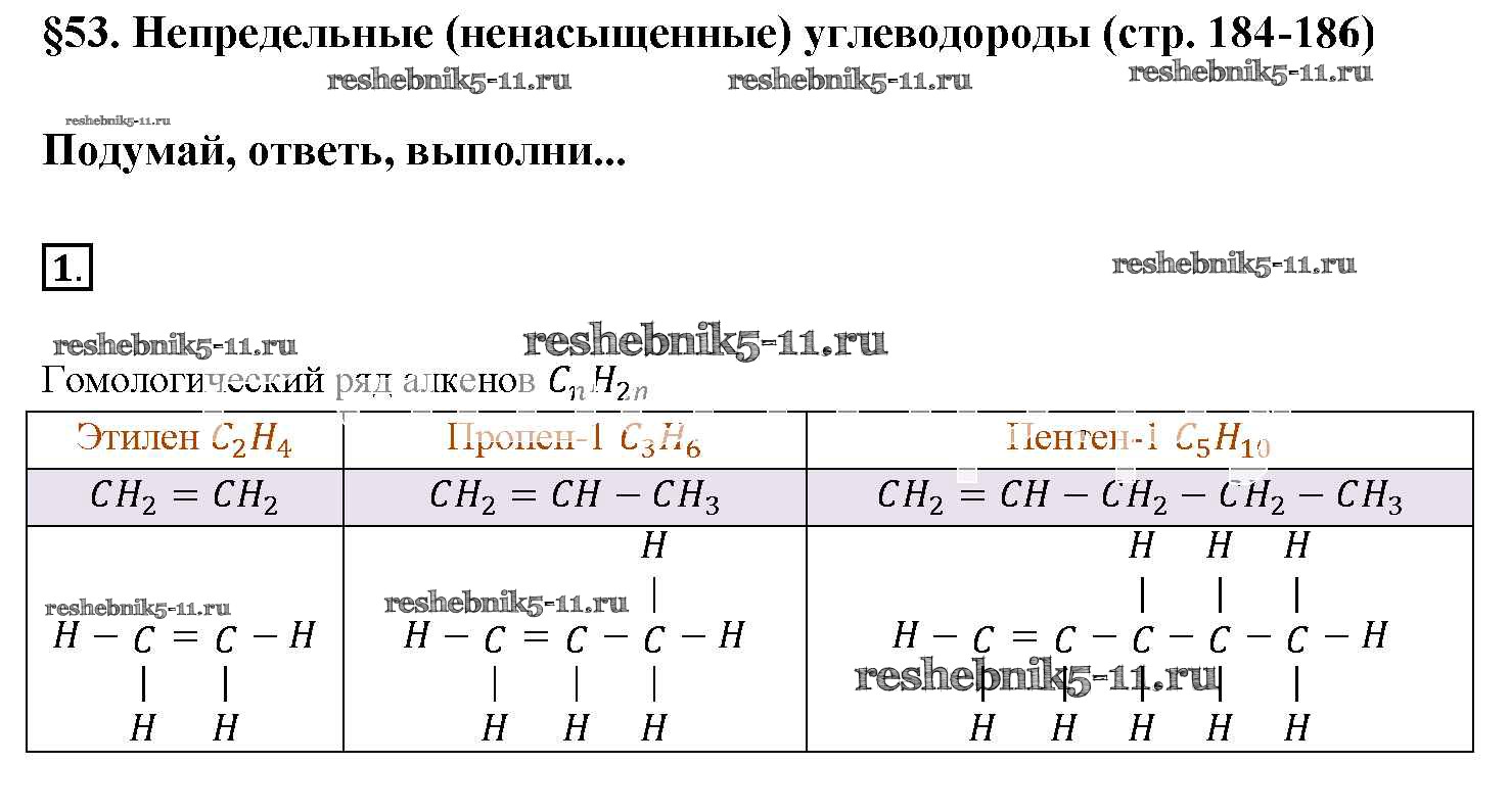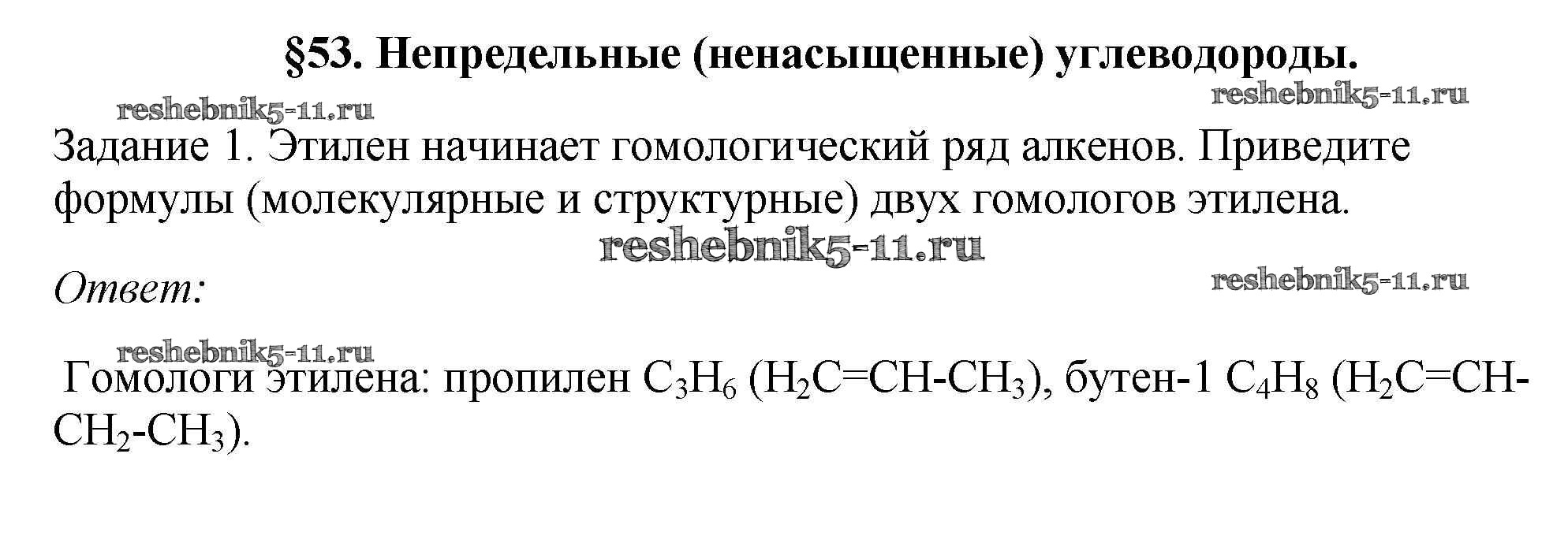 Готовая домашняя работа с ответами по Химии за 9 класс Рудзитис, Фельдман Учебник УМК Просвещение 2016 ФГОС - § 53. Непредельные углеводороды 1