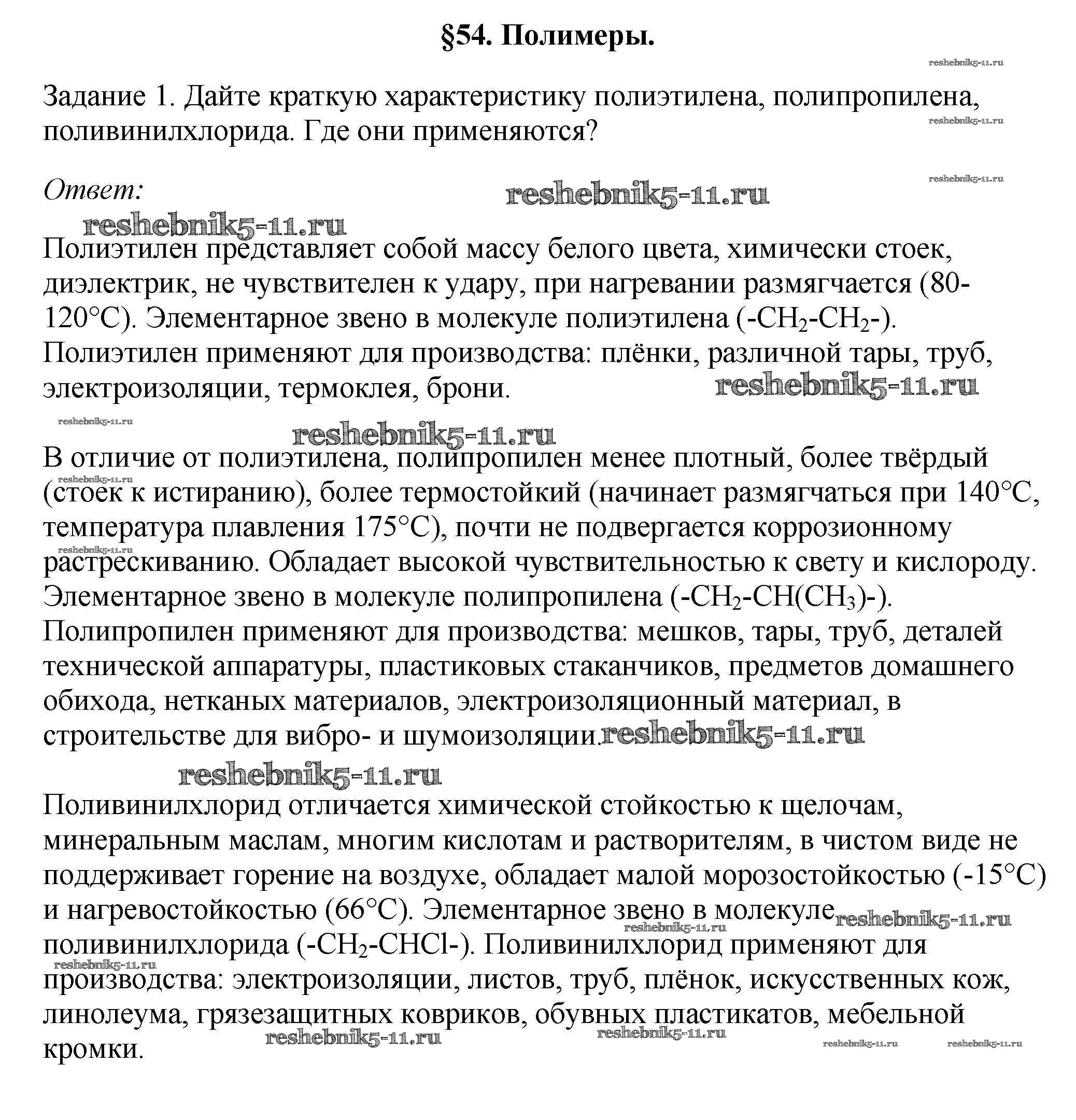 Решебник №2 / новое издание / § 54. Полимеры / 1