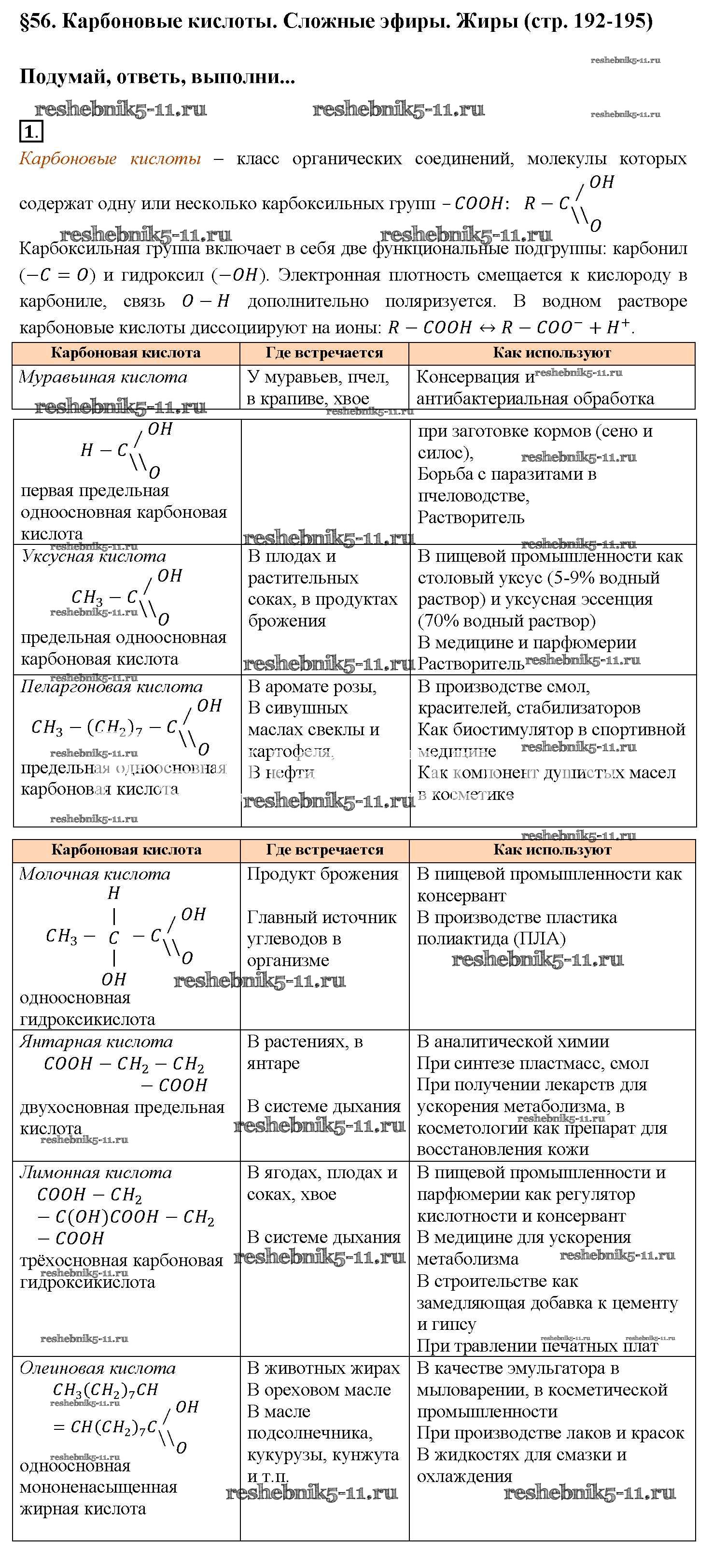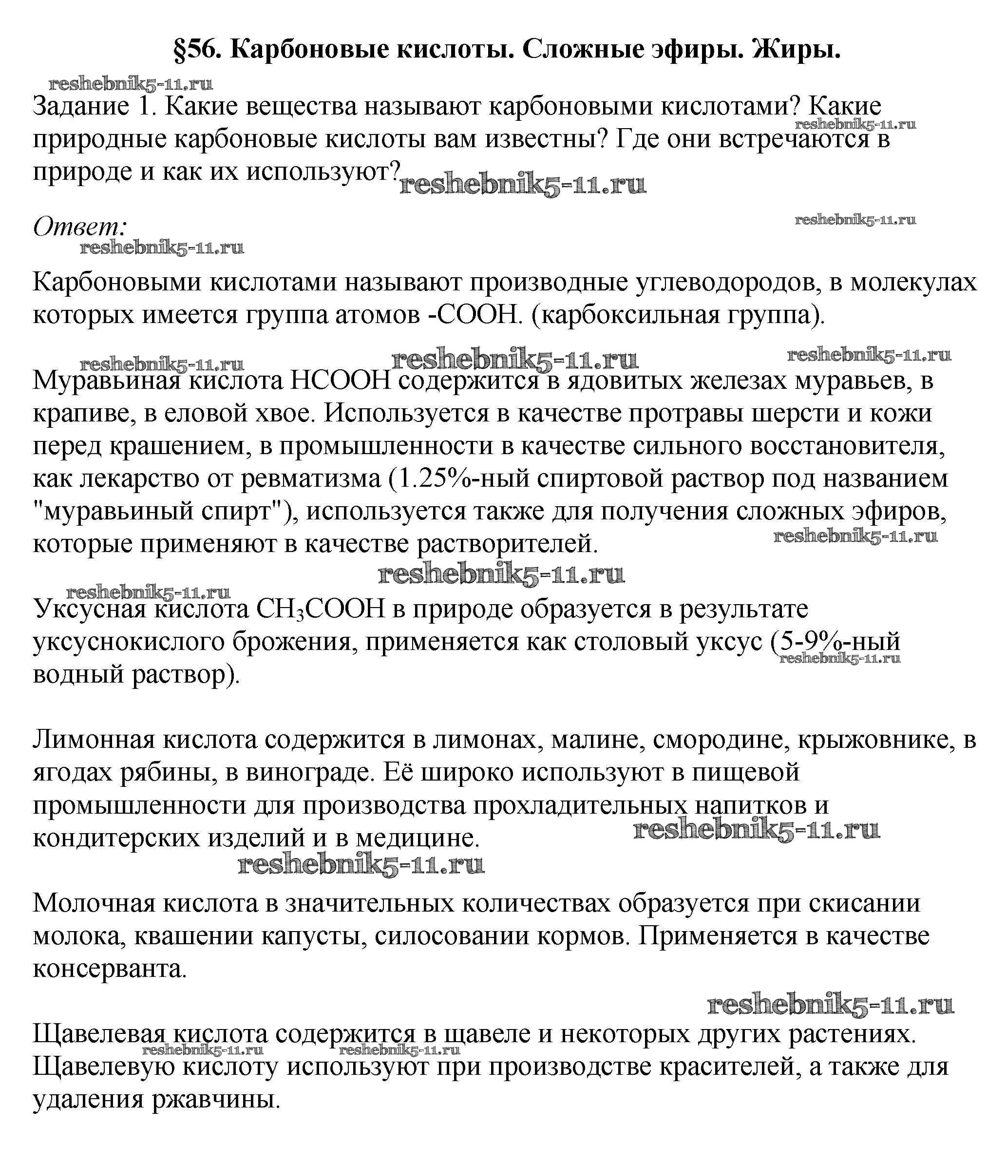 Решебник №1 / новое издание / § 56. Карбоновые кислоты. Сложные эфиры. Жиры / 1