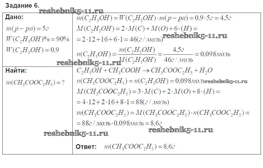 Готовая домашняя работа с ответами по Химии за 9 класс Рудзитис, Фельдман Учебник УМК Просвещение 2016 ФГОС - § 56. Карбоновые кислоты. Сложные эфиры. Жиры 6