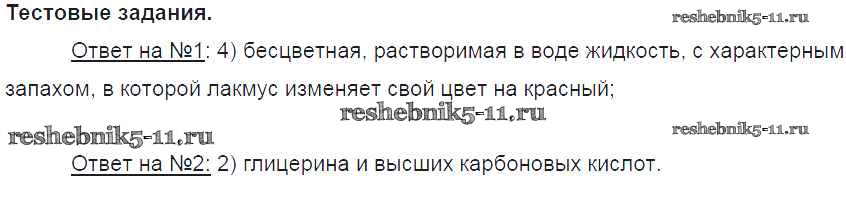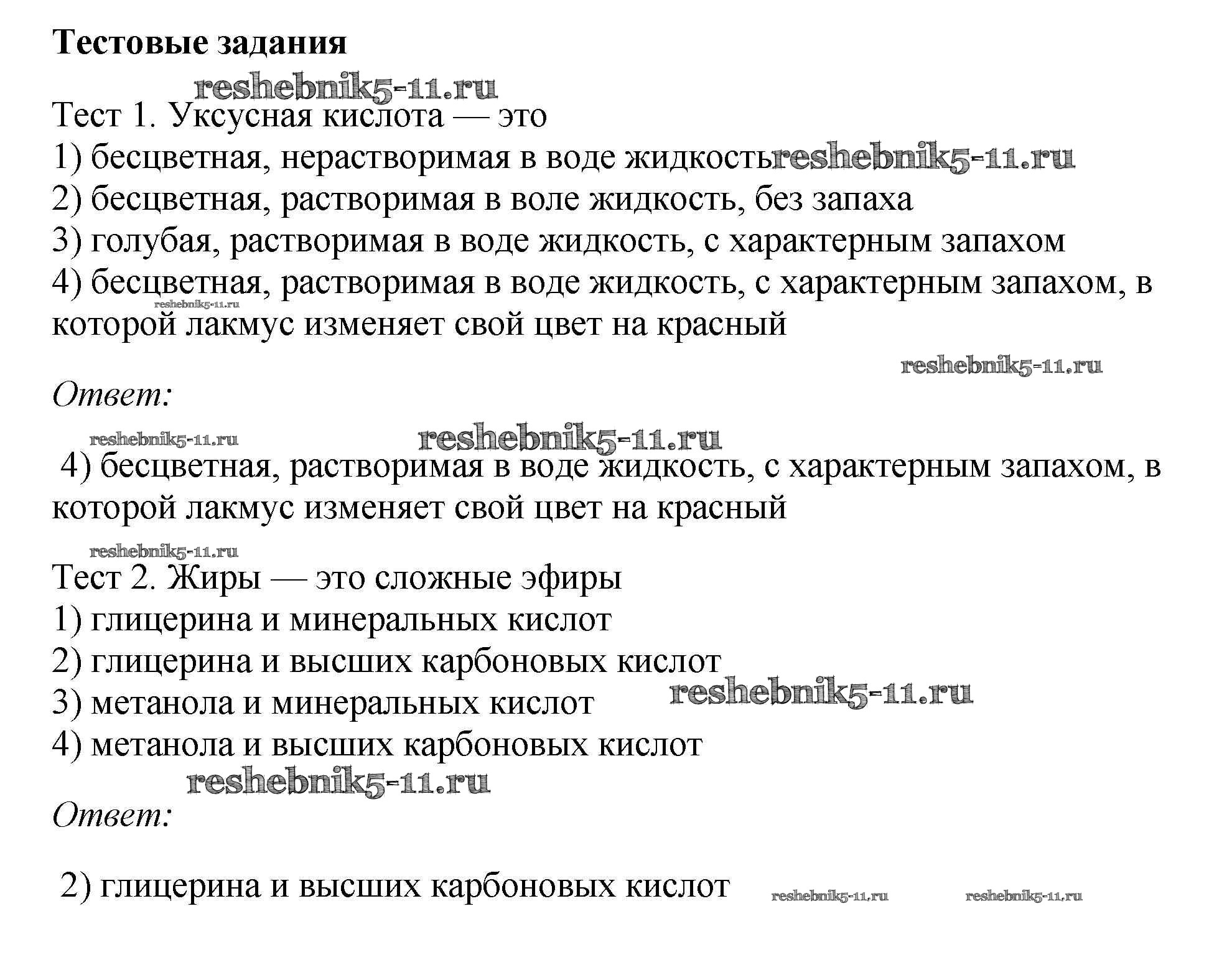 Решебник №1 / новое издание / § 56. Карбоновые кислоты. Сложные эфиры. Жиры / тестовое задание