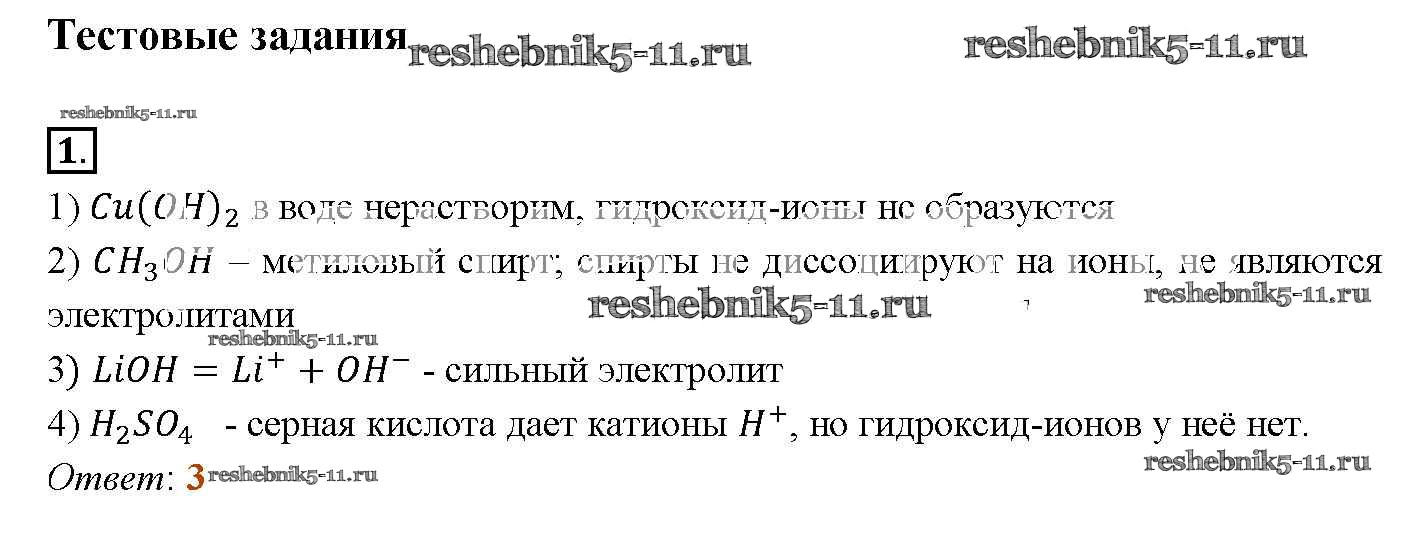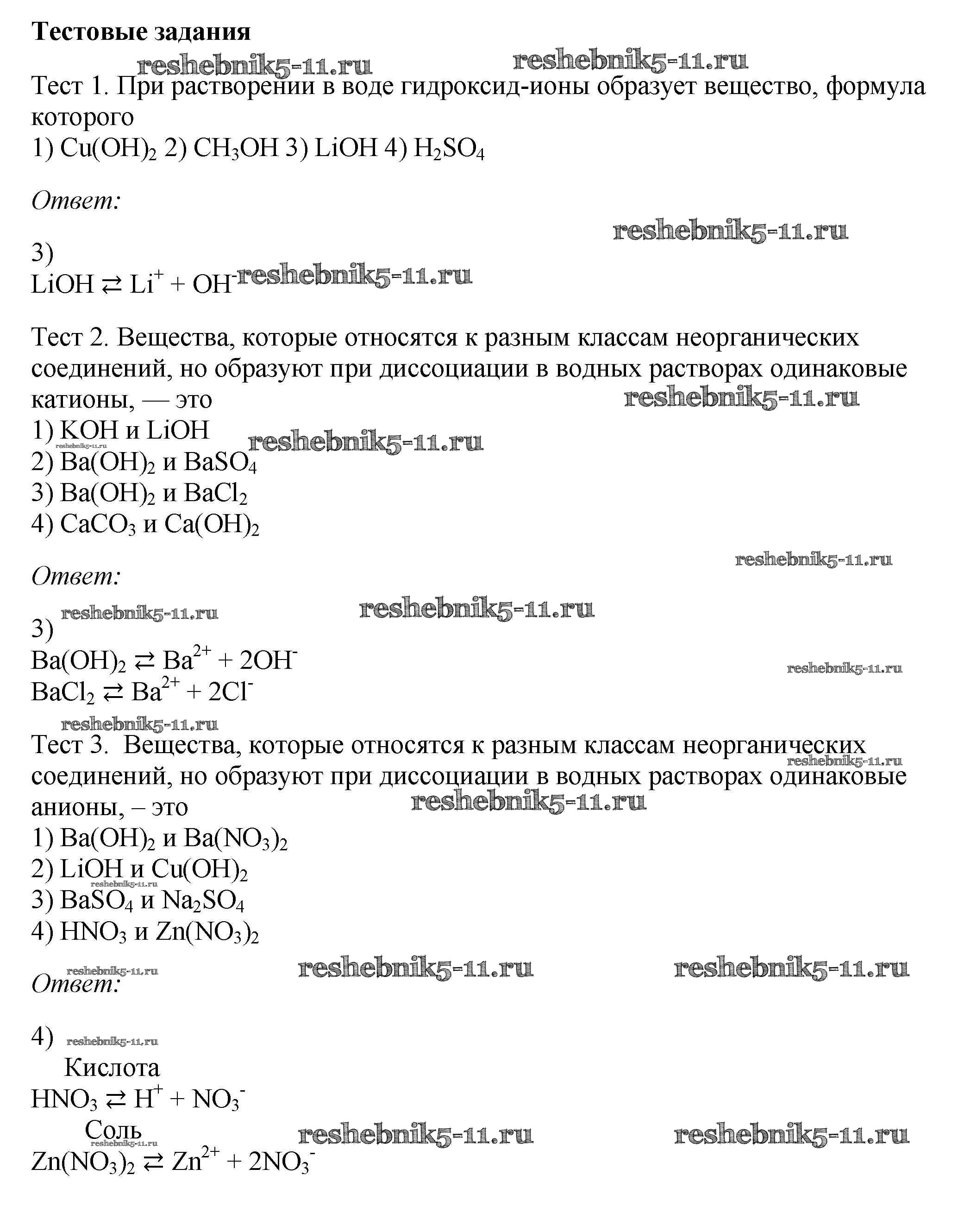 Решебник №3 / новое издание / § 7. Диссоциация кислот, оснований и солей / тестовое задание
