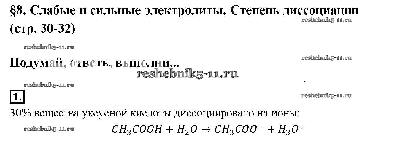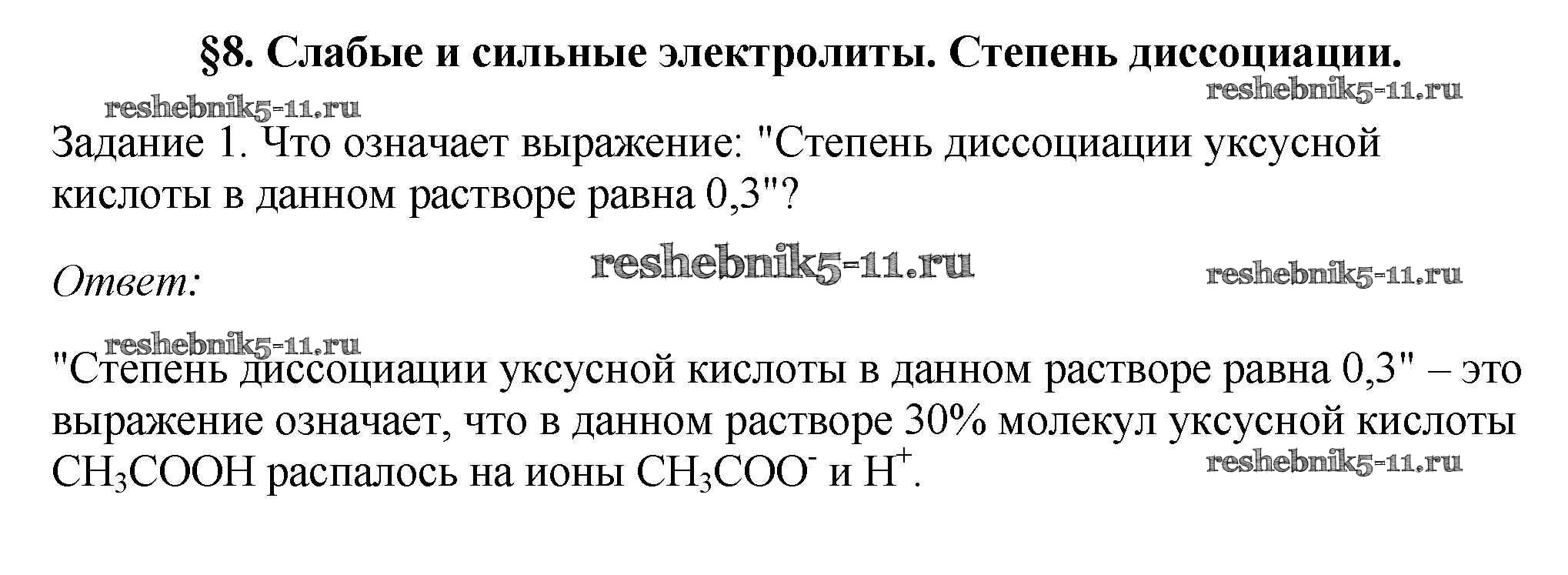 Решебник №3 / новое издание / § 8. Слабые и сильные электролиты. Степень диссоциаций / 1