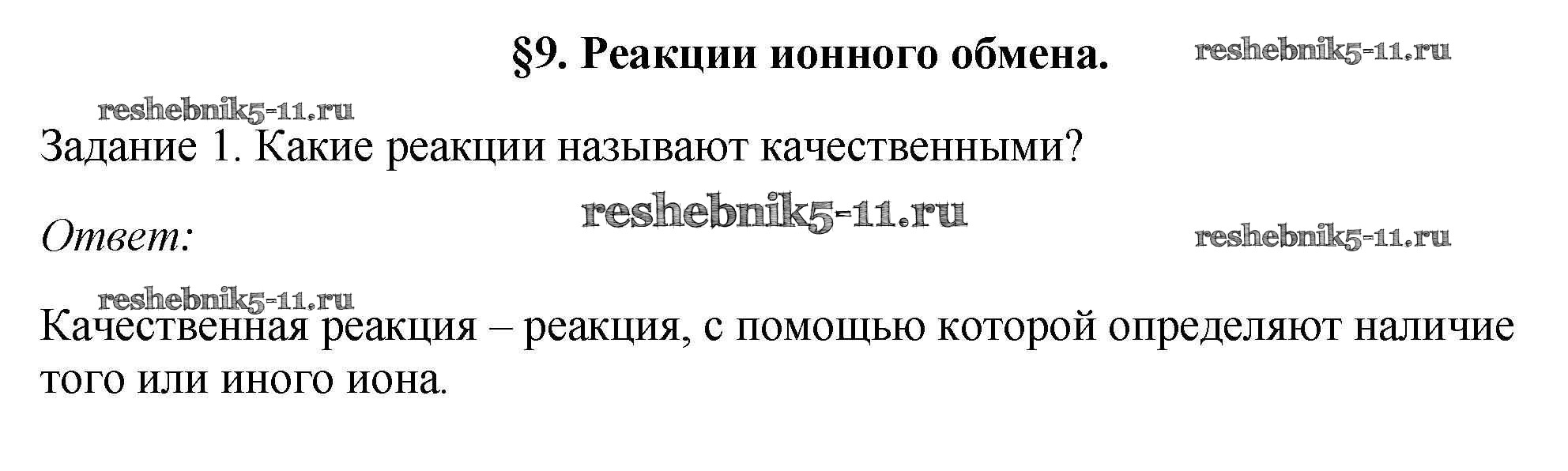 Готовая домашняя работа с ответами по Химии за 9 класс Рудзитис, Фельдман Учебник УМК Просвещение 2016 ФГОС - § 9. Реакции ионного обмена 1