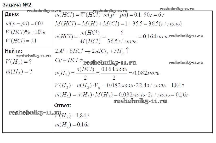Готовая домашняя работа с ответами по Химии за 9 класс Рудзитис, Фельдман Учебник УМК Просвещение 2016 ФГОС - Задачи к §34-38 задача №2