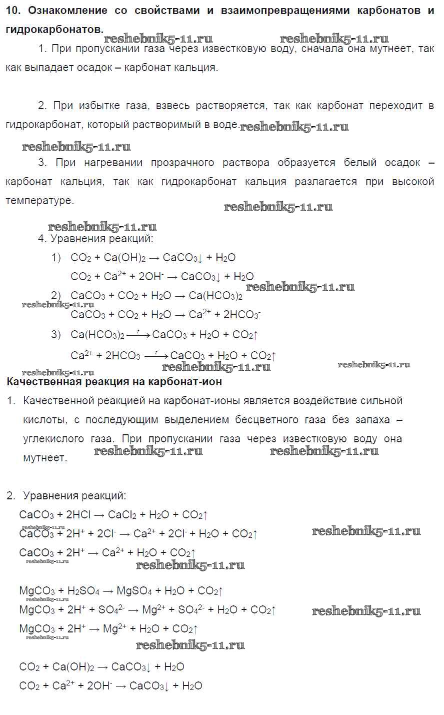 Готовая домашняя работа с ответами по Химии за 9 класс Рудзитис, Фельдман Учебник УМК Просвещение 2016 ФГОС - Лабораторные опыты 10