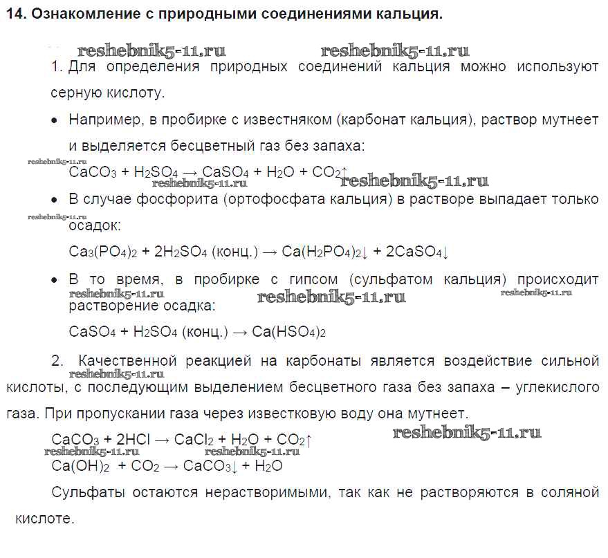 Готовая домашняя работа с ответами по Химии за 9 класс Рудзитис, Фельдман Учебник УМК Просвещение 2016 ФГОС - Лабораторные опыты 14