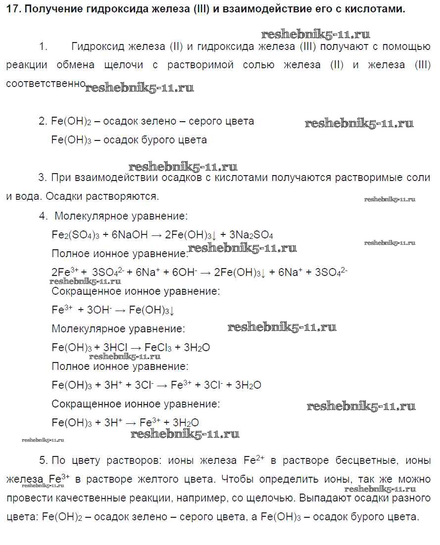 Готовая домашняя работа с ответами по Химии за 9 класс Рудзитис, Фельдман Учебник УМК Просвещение 2016 ФГОС - Лабораторные опыты 17