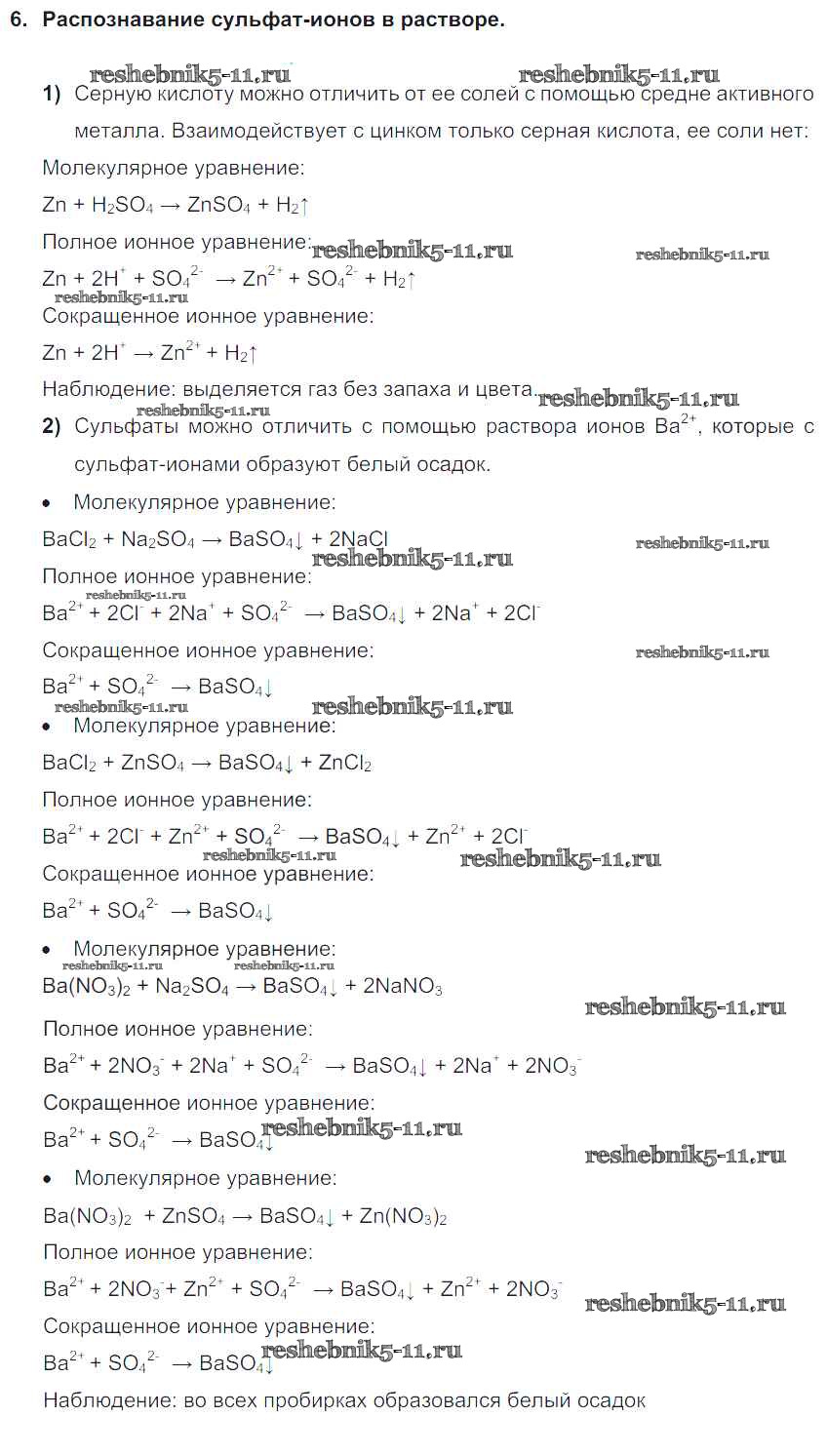 Готовая домашняя работа с ответами по Химии за 9 класс Рудзитис, Фельдман Учебник УМК Просвещение 2016 ФГОС - Лабораторные опыты 6