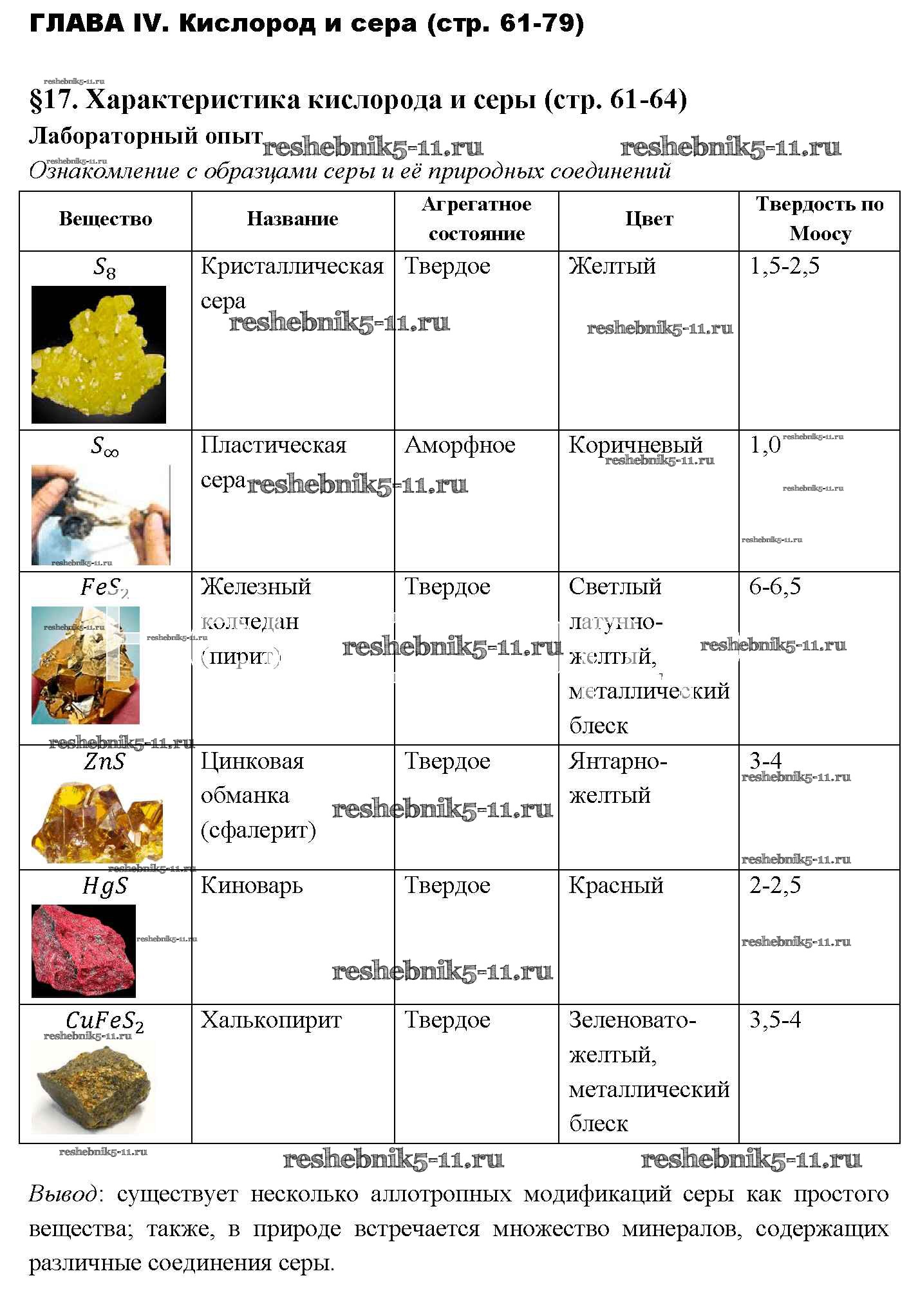 Готовая домашняя работа с ответами по Химии за 9 класс Рудзитис, Фельдман Учебник УМК Просвещение 2016 ФГОС - § 17. Характеристика кислорода и серы Лабораторный опыт