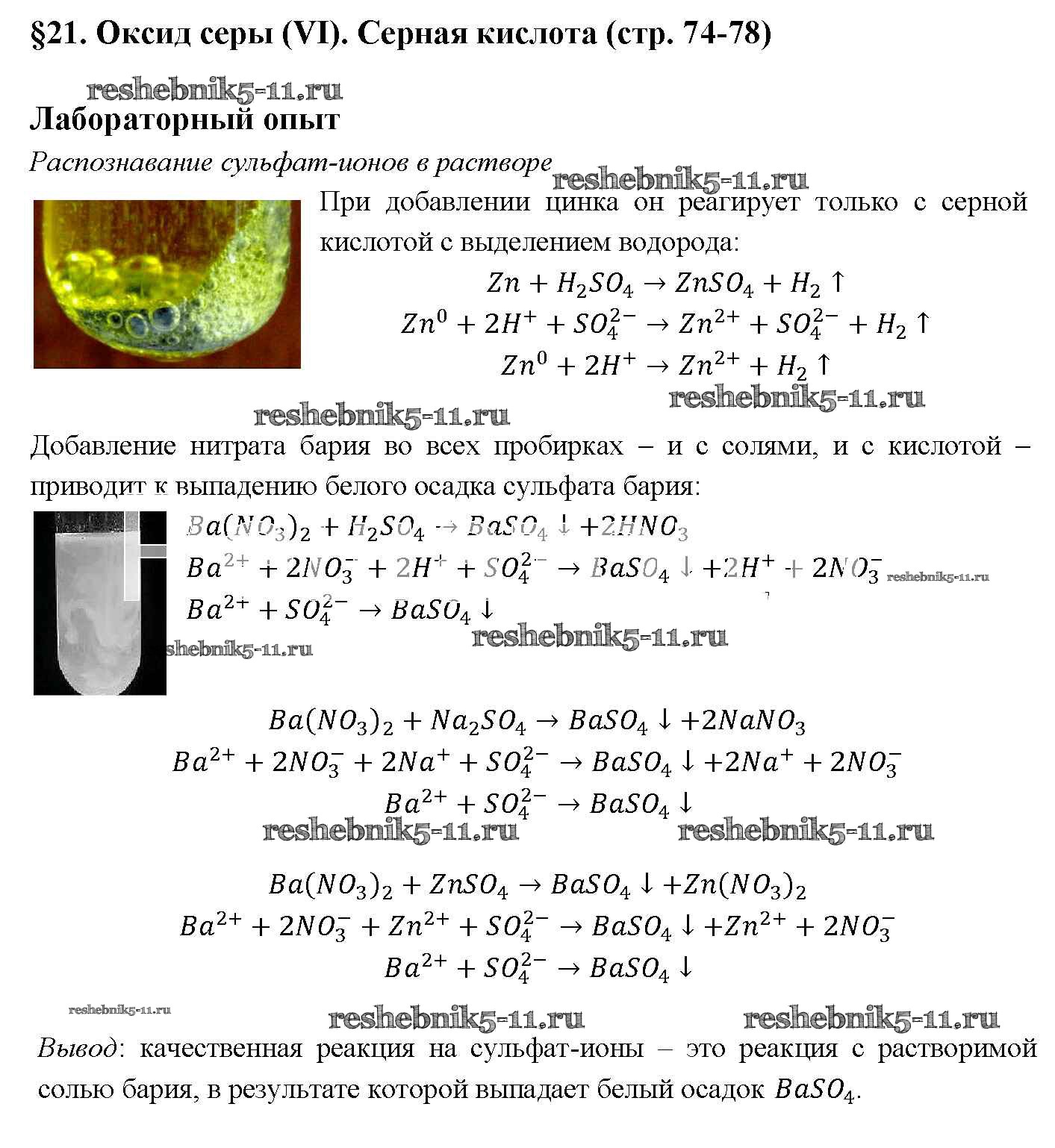 Решебник №2 / новое издание / § 21. Оксид серы (VI). Серная кислота / лабораторный опыт