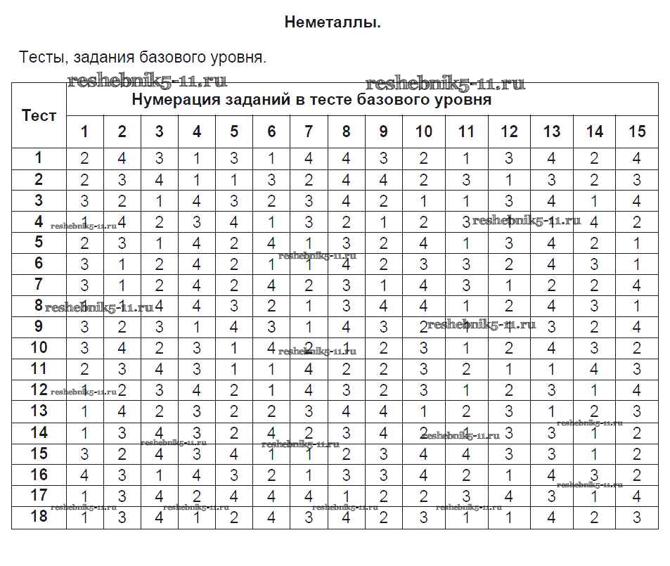 Готовая домашняя работа с ответами по Химии за 9 класс Рябов Тесты УМК Экзамен 2016 ФГОС - Неметаллы №1. Неметаллы. Задания базового уровня