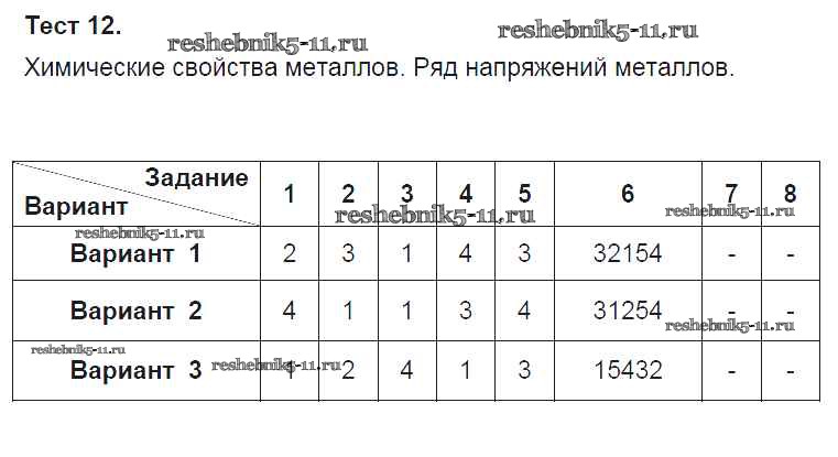 Готовая домашняя работа с ответами по Химии за 9 класс Боровских Тесты УМК Экзамен 2013 ФГОС - Тесты Тест-12. Химические свойства металлов. Ряд напряжений металлов