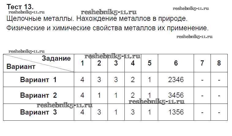 Готовая домашняя работа с ответами по Химии за 9 класс Боровских Тесты УМК Экзамен 2013 ФГОС - Тесты Тест-13. Щелочные металлы. Нахождение металлов в природе