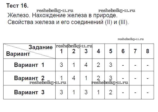 Готовая домашняя работа с ответами по Химии за 9 класс Боровских Тесты УМК Экзамен 2013 ФГОС - Тесты Тест-16. Железо. Нахождение железа в природе