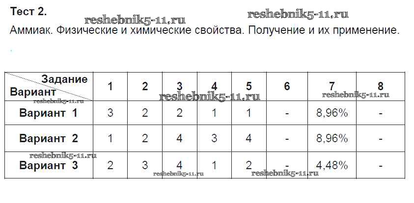 Готовая домашняя работа с ответами по Химии за 9 класс Боровских Тесты УМК Экзамен 2013 ФГОС - Тесты Тест-2. Аммиак. Физические и химические свойства
