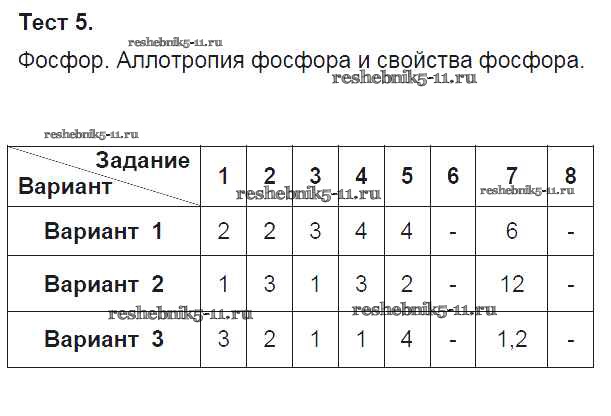 Готовая домашняя работа с ответами по Химии за 9 класс Боровских Тесты УМК Экзамен 2013 ФГОС - Тесты Тест-5. Фосфор. Аллотропия фосфора и свойства фосфора