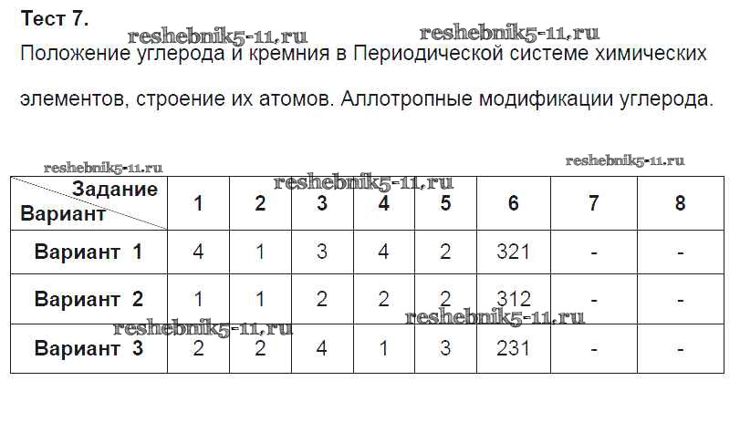 Готовая домашняя работа с ответами по Химии за 9 класс Боровских Тесты УМК Экзамен 2013 ФГОС - Тесты Тест-7. Положение углерода и кремния в Периодической системе химических элементов